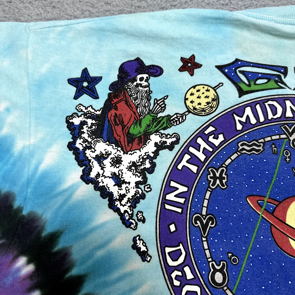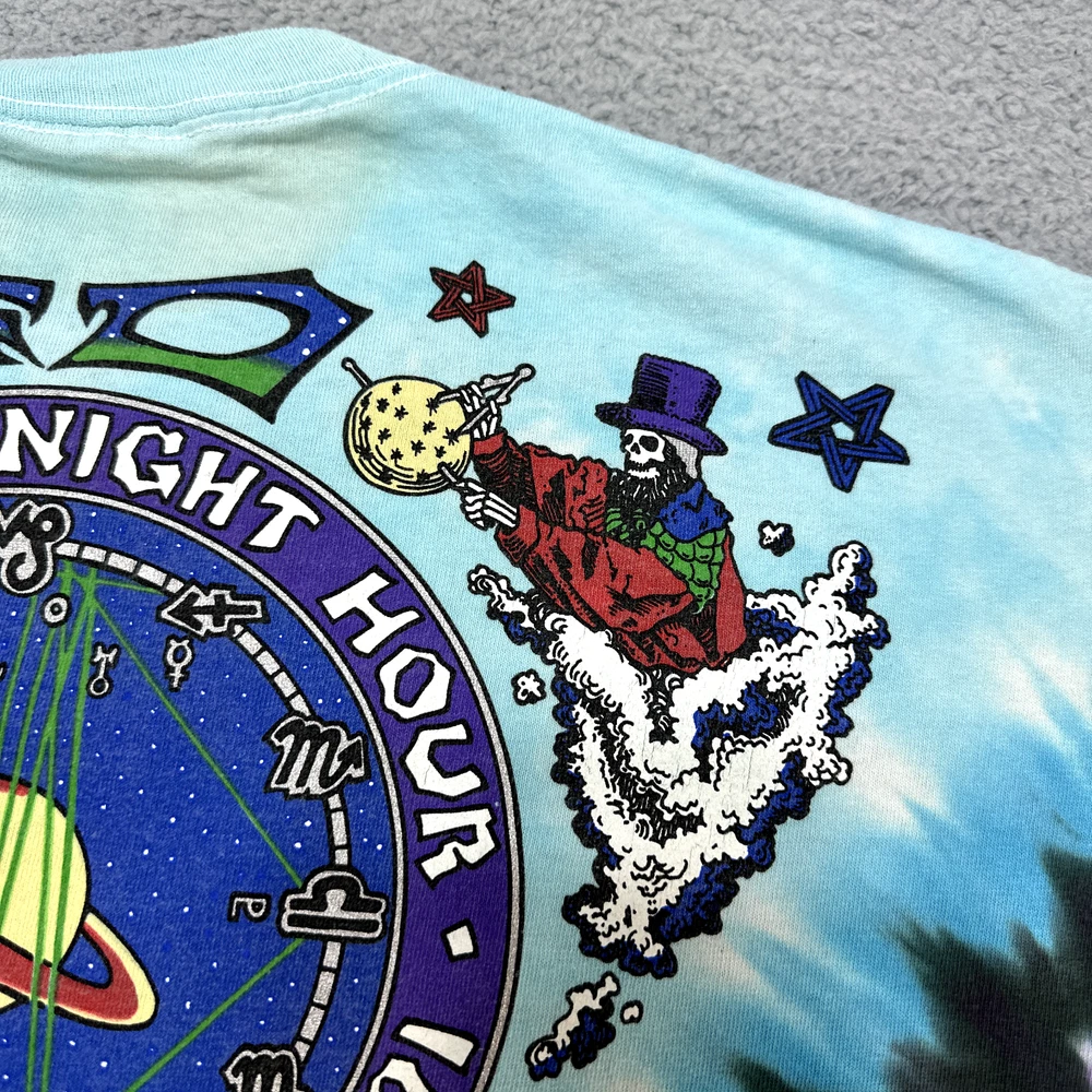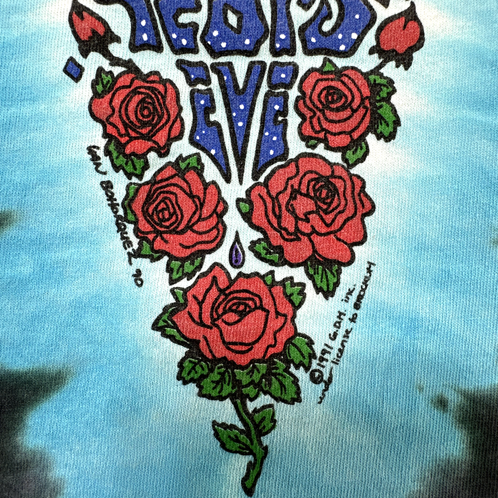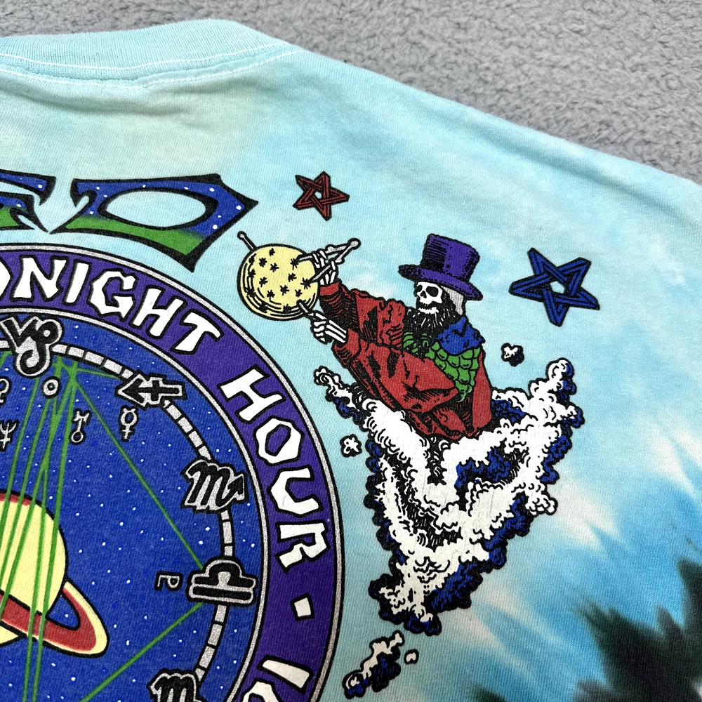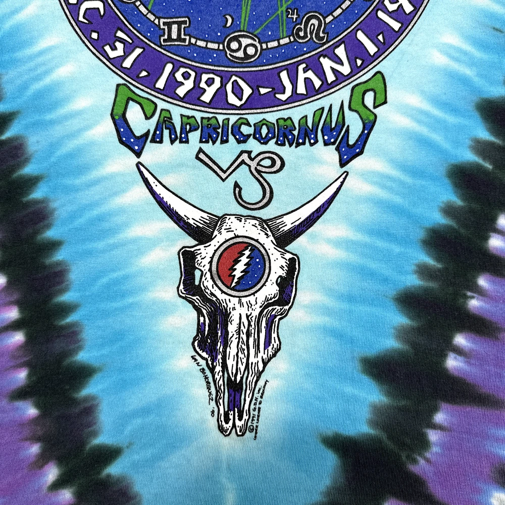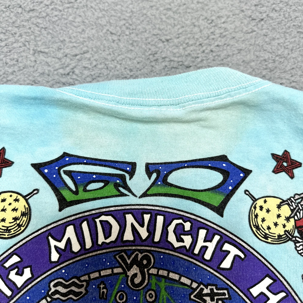 Vintage Grateful Dead Shirt New Years Eve 1991 In The Midnight Hour Single Stitch Capricornus Tie Dye. Original vintage 90s concert tees. Stain around the neck as shown. Pockets No Condition: Well cared for - Nice condition - No Neck size Tag and stain around neck area. Approximate Measurements in final photos. Stretch "Flex" in fabric (other than elastic elements): No Buy More & Save! Combined shipping for US customers - $1.99 each additional item (Add items to shopping cart and discounts will automatically calculate during checkout) * ALL PREOWNED CLOTHING HAS BEEN LAUNDERED PER EBAY'S POLICIES AND STANDARDS.*