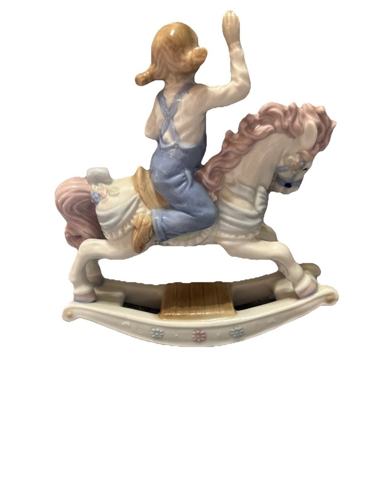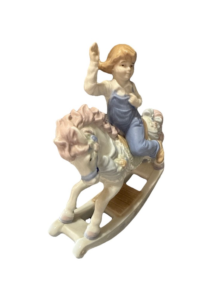 Vintage 1991 Paul Sebastian 7" Ceramic Girl on Rocking Horse Figurine