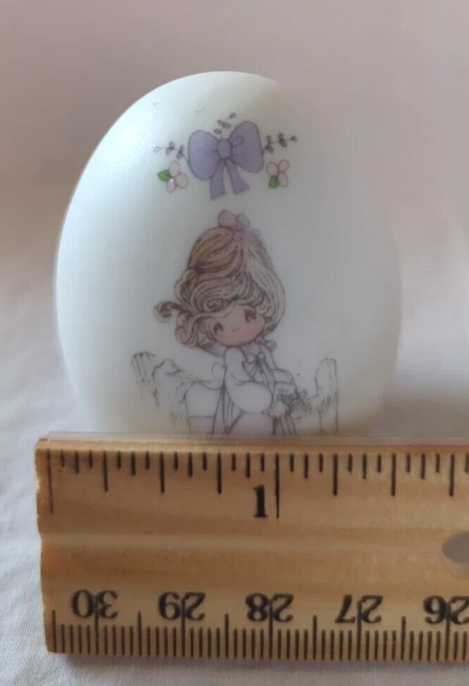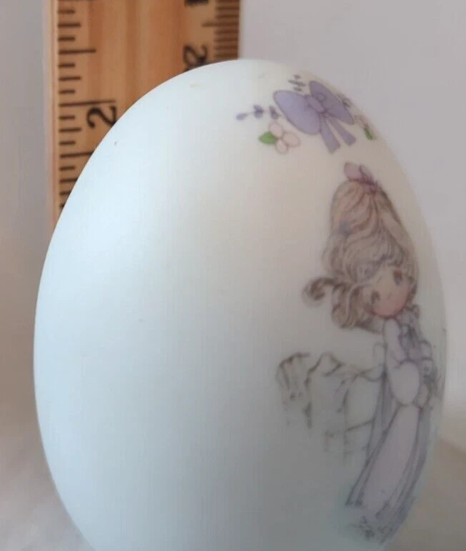 This adorable vintage Easter egg is in great pre-owned condition—no cracks or chips! The delicate details are beautifully preserved, and at just 2.25", it’s a charming collectors' piece. The seller packs with excellent care, ensuring it arrives safely. Perfect for Precious Moments fans or Easter decor!