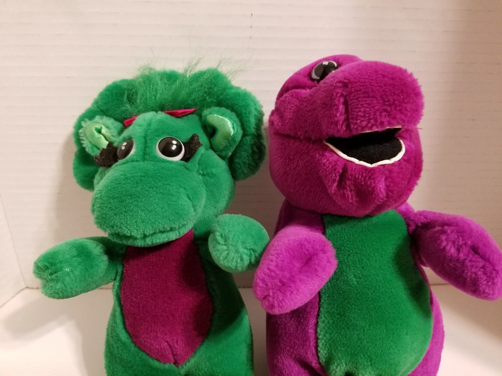 Vintage 1992 Barney The Dinosaur and Baby Bop Plush Toy Set 10"