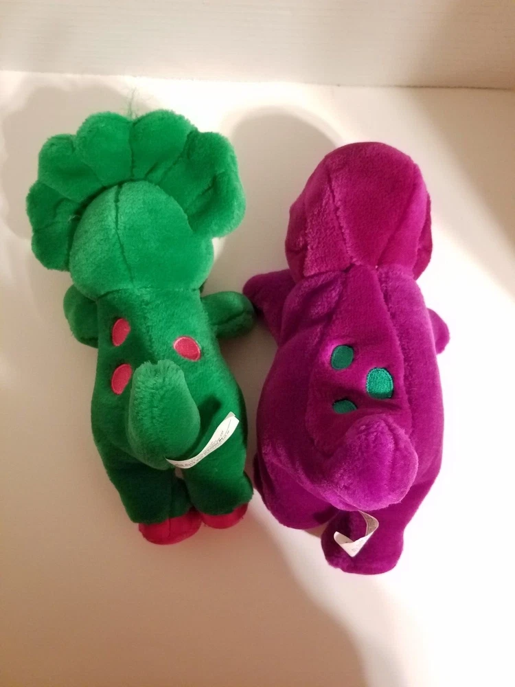 This vintage 1992 Barney the Dinosaur and Baby Bop plush toy set is sure to bring back fond memories for those who grew up with the beloved dinosaur. Measuring at 10 inches, this small plush toy is perfect for collectors or for children to cuddle with. The set includes both Barney and Baby Bop, making it a complete collection for fans of the show. The plush toys are made by Lyons, a well-known brand in the world of stuffed animals. They are part of the Barney & Friends character family, and are sure to bring a smile to anyone's face. This set falls under the categories of Vintage, Stuffed Animals, and Toys & Hobbies. Don't miss out on the chance to own this wonderful piece of nostalgia.