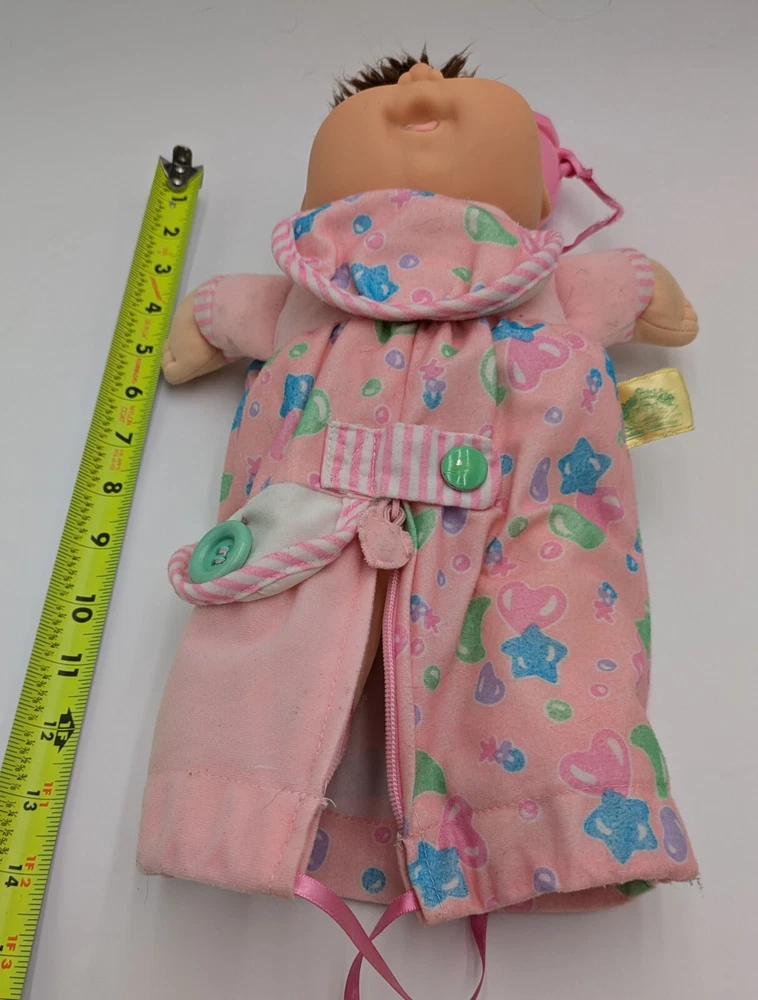 This vintage 1992 Cabbage Patch Toddler Collection Love N Care Baby Doll is a must-have for any collector or enthusiast. The doll is 12 inches in size and comes with straight brown hair and blue eyes. The doll is made of plastic and has a medium complexion. This original Hasbro doll is licensed and comes with a bottle. It was manufactured in the 1990s and is a great addition to any vintage doll collection. Perfect for display or play, this doll is sure to bring joy to any recipient.