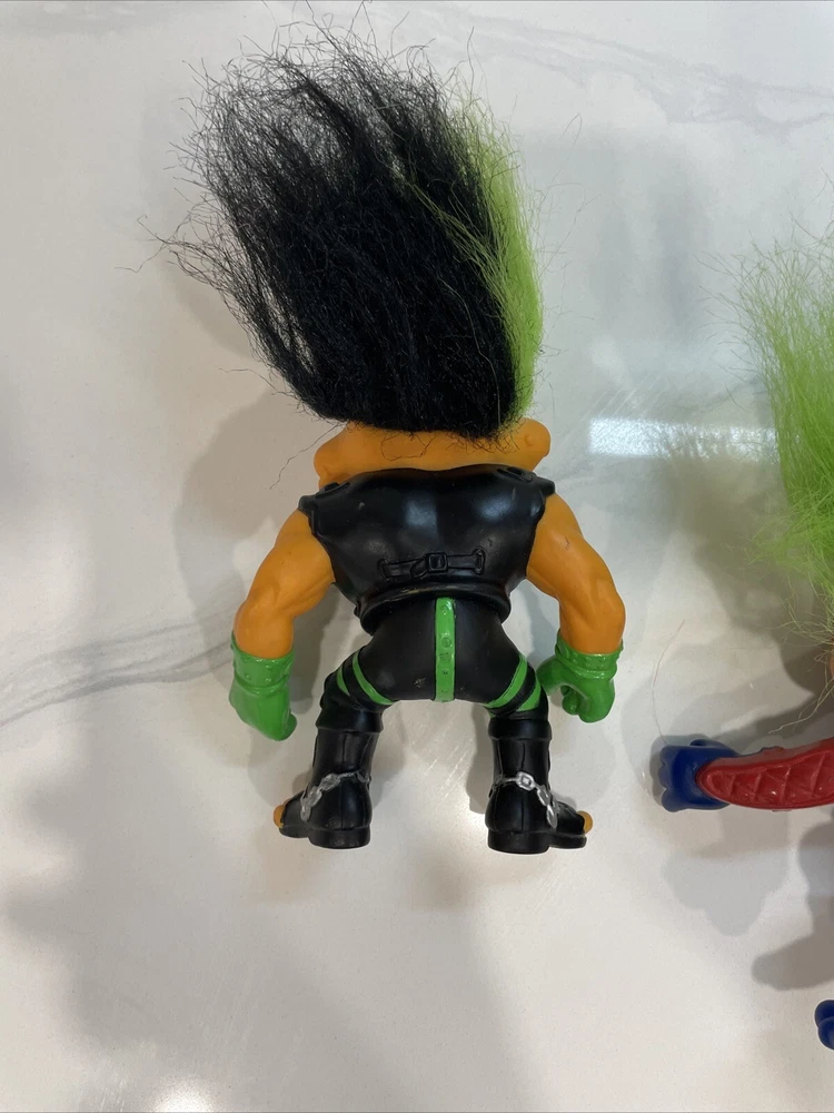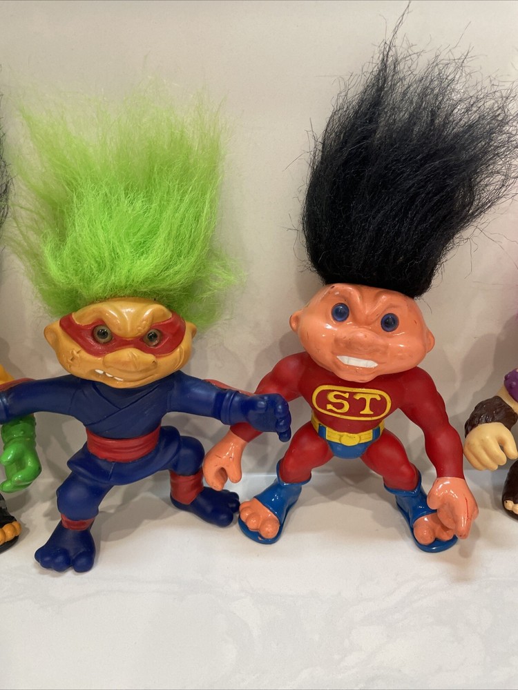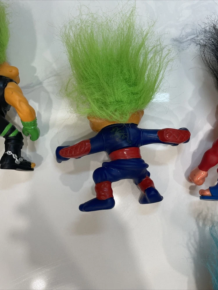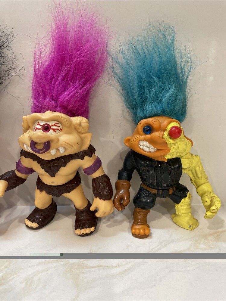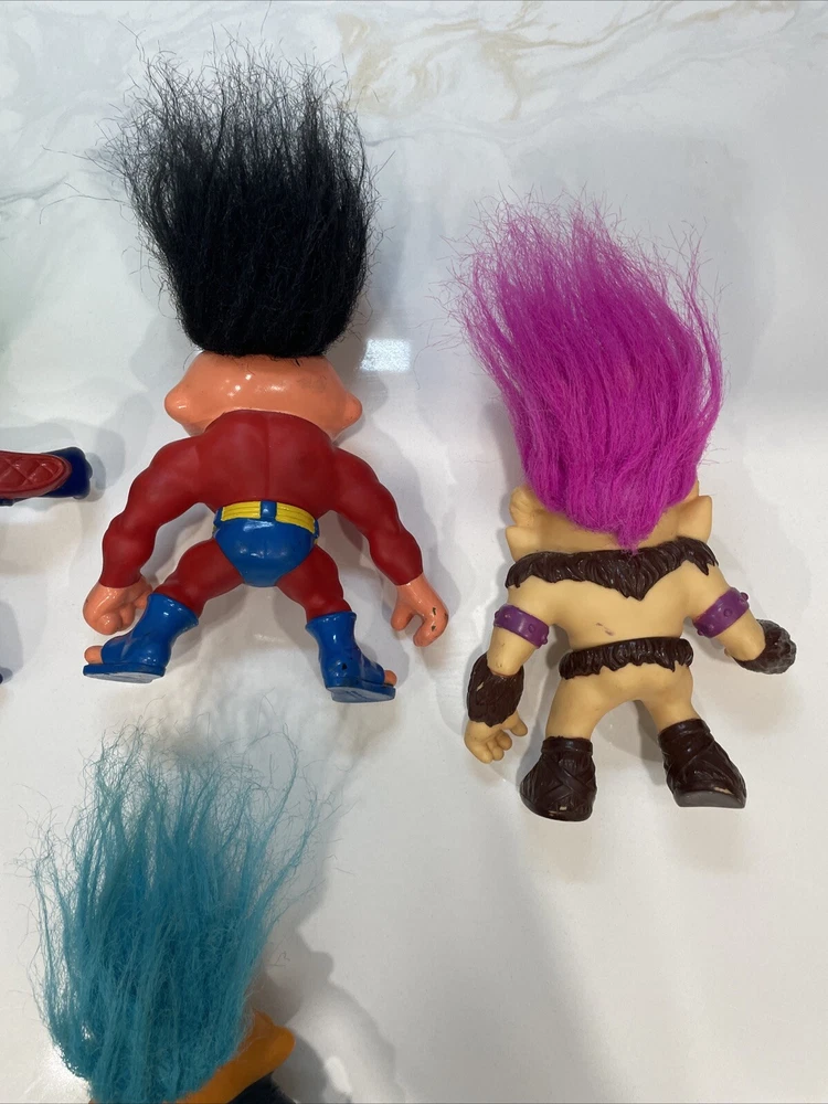 This lot of 5 vintage Hasbro Battle Trolls figurines is a must-have for any Trolls fan. These colorful vinyl figures stand at 5 inches tall and are perfect for display or play. The set includes characters from the Battle Trolls series and is an original, licensed reproduction from 1992. The multicolored Trolls are transformed into action figures with intricate details and are perfect for collectors or children aged 5-7 years. These figurines are a part of the Trolls franchise and are a great addition to any collection. Get your hands on this rare set of Battle Trolls and relive the fantasy adventures of your childhood.