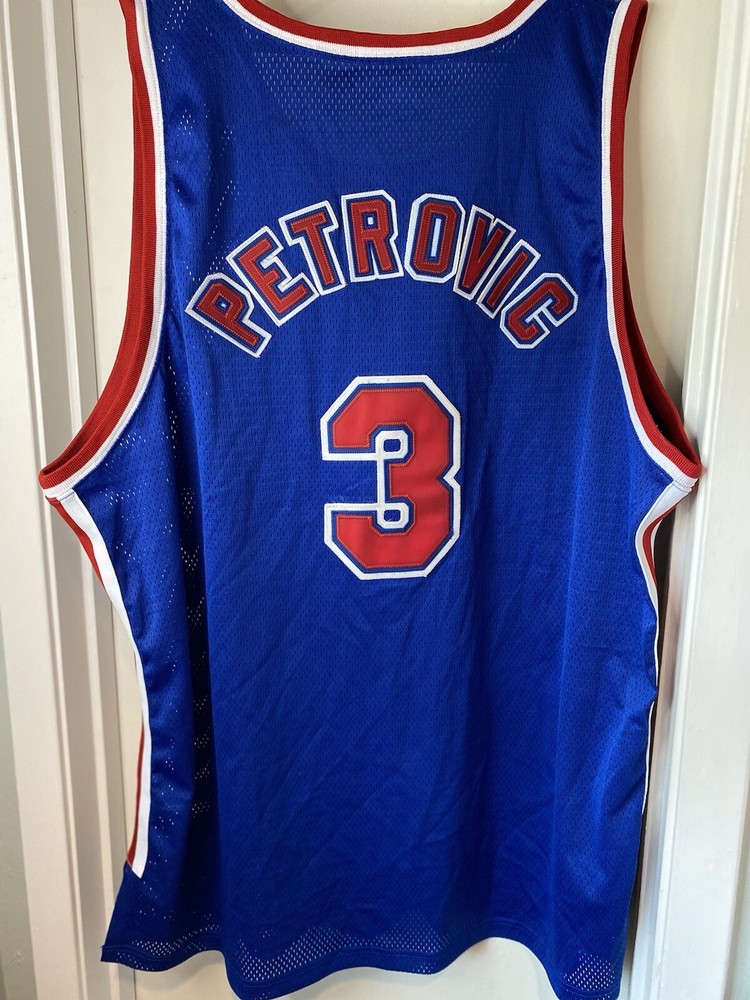 Unknown authenticity, very good condition … Last two photos are measurements pit to pit & length Nets NBA Jersey #3 Petrovic 1992-1993 Nostalgia Co