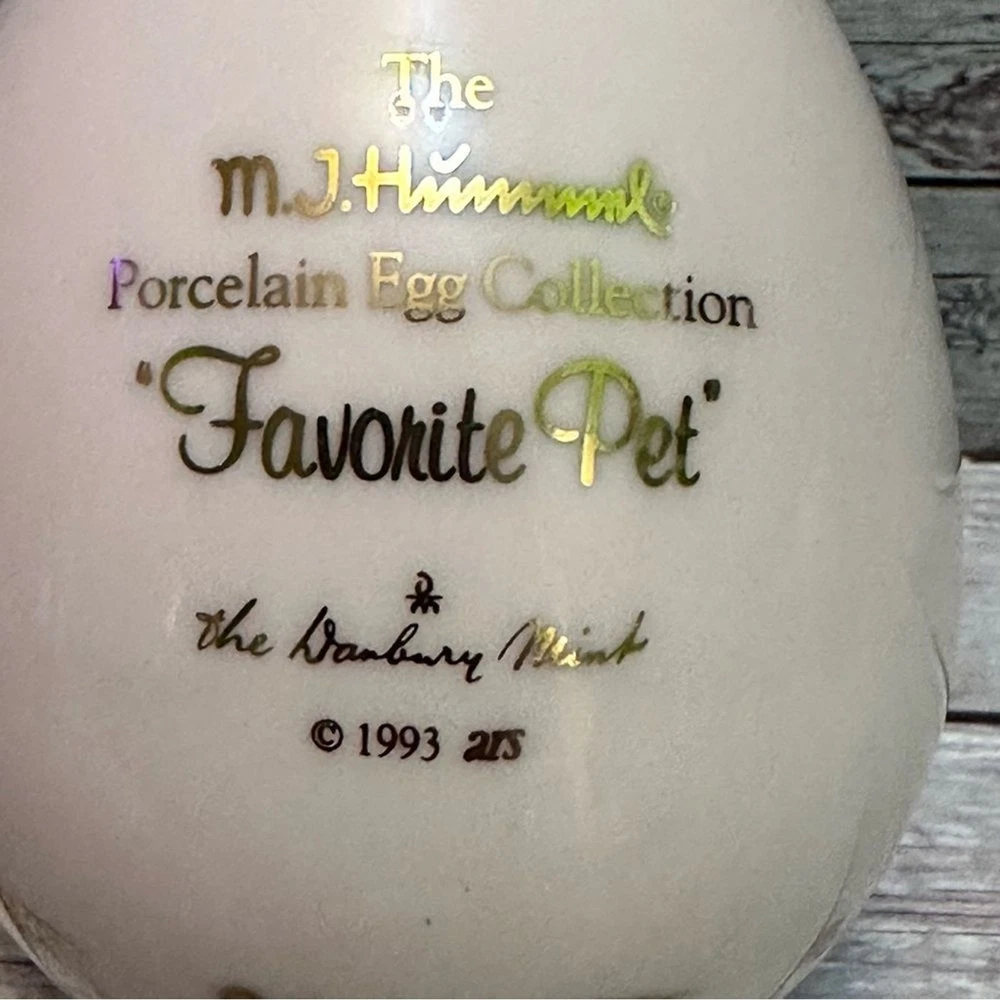 M J Hummel collectibles eggs Set of two decorative egg figurines with pastoral scenes. Features pastel green and cream colors with gold accents.vintage 1993 Great Condition free smoke