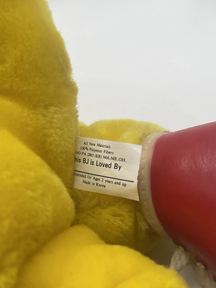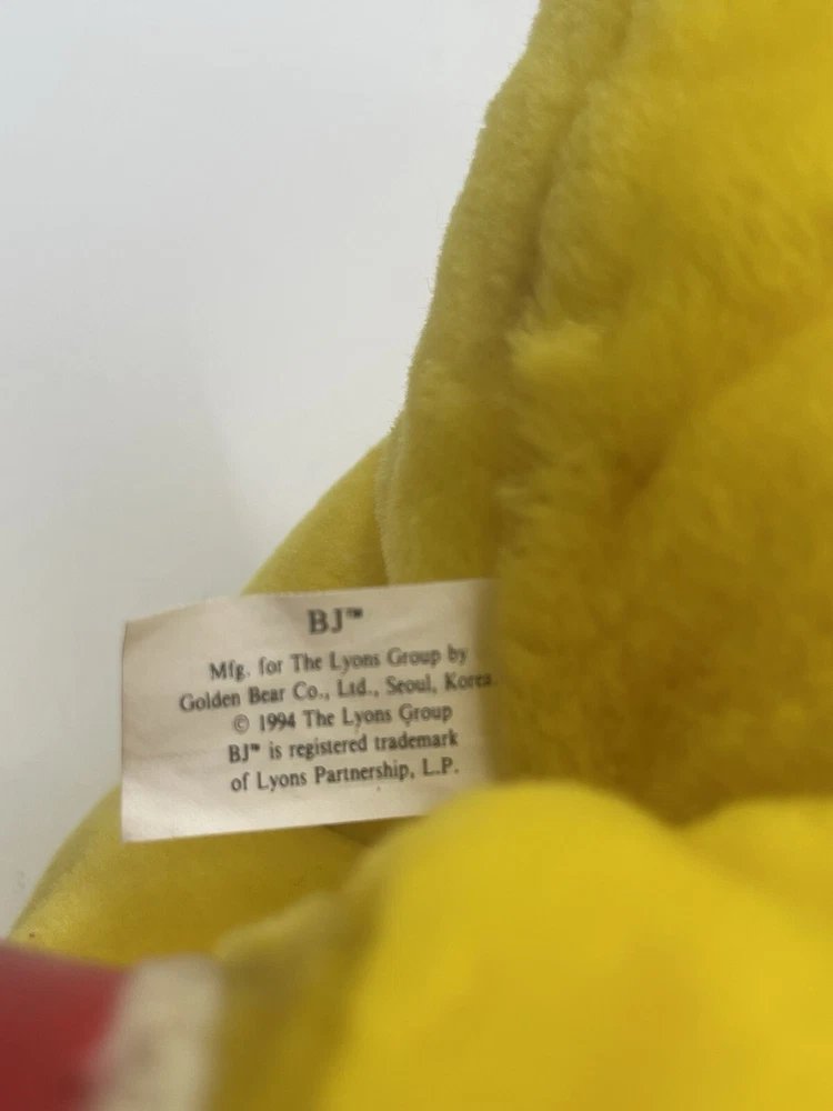 Vintage 1994 Barney 13” “BJ “Yellow Plush Dinosaur W/Shoes By Lyons Group. Condition is Used. Shipped with USPS Ground Advantage.