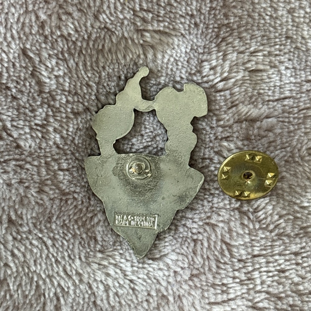 The Vintage 1994 WB Marvin The Martian And Daffy Duck Space Suits Lapel Pin is a nostalgic collectible featuring characters from the Looney Tunes series wearing space suits. This pin was made in 1994 and is a great addition to any pin collection or a perfect gift for fans of classic Warner Bros cartoons. With its unique design and ties to popular characters, this lapel pin is sure to be a cherished piece for collectors of vintage memorabilia. 1.5” X 1” in size