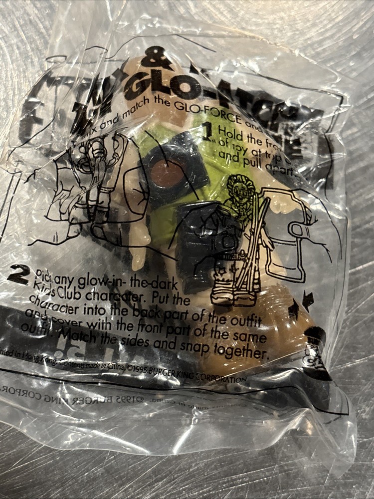 Free Shipping on orders over $75.00 Combined shipping counts. This vintage toy is a set of Glo-Force Toy Snaps from 1995, originally offered by Burger King. The toy snaps glow in the dark and are brand new in the original packaging. Made in China, this non-domestic product is ideal for children aged 3 and up, with an age range spanning from 4 years old to adults. The Glo-Force Toy Snaps are part of the Glo-Force character family and provide entertainment for various age levels.