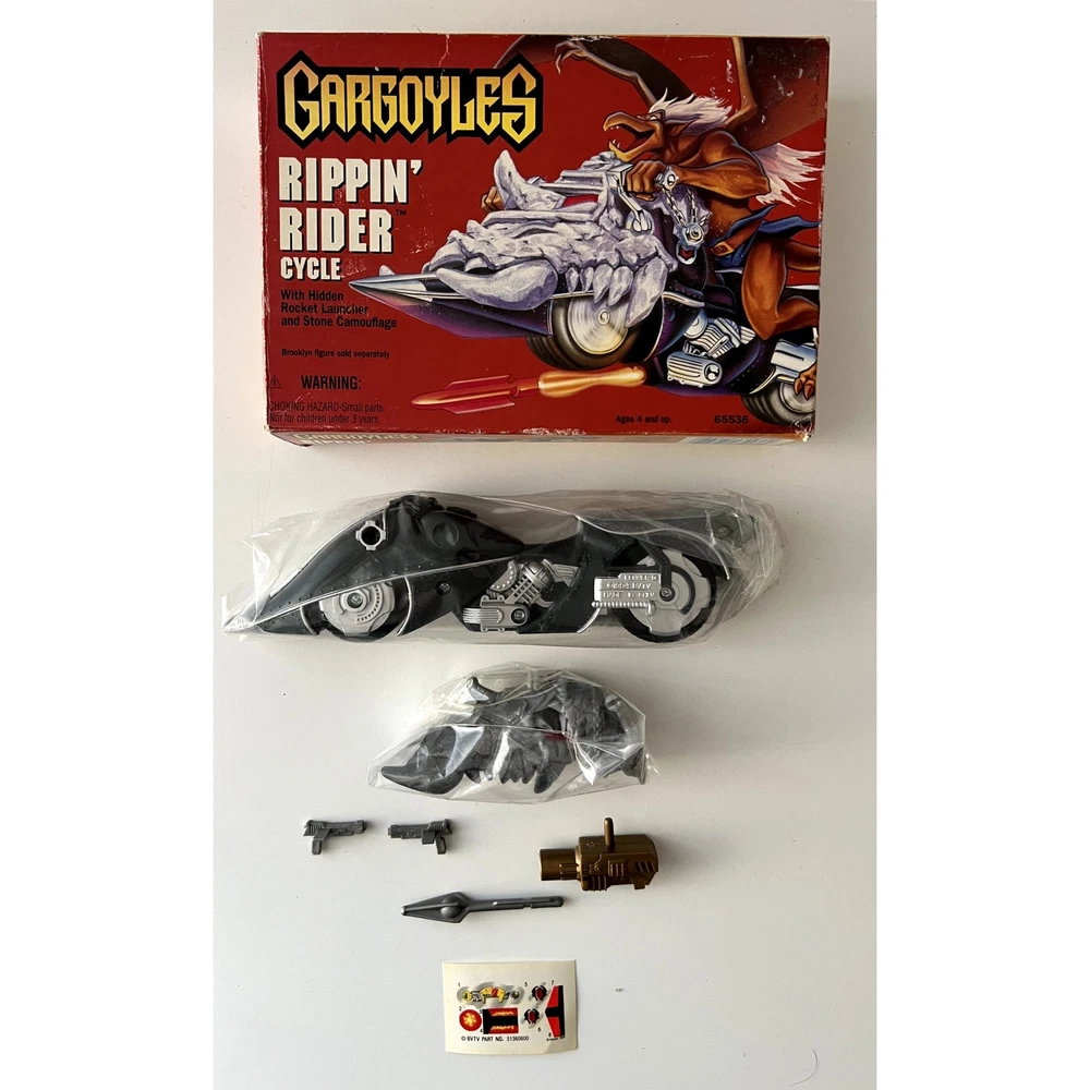 This vintage Kenner Hasbro Gargoyles Rippin' Rider Cycle is a must-have for any Star Trek fan or collector of action figures. With its unique design and intricate details, this toy vehicle is sure to impress. Featuring the iconic Gargoyle character and manufactured in 1995, this cycle is a true gem for any fan of the franchise.The brand of this toy is Kenner, and it falls under the category of action figures and toys. This vehicle is perfect for display or play, and would make a great addition to any collection. Don't miss out on the opportunity to own this one-of-a-kind piece of Star Trek history.
