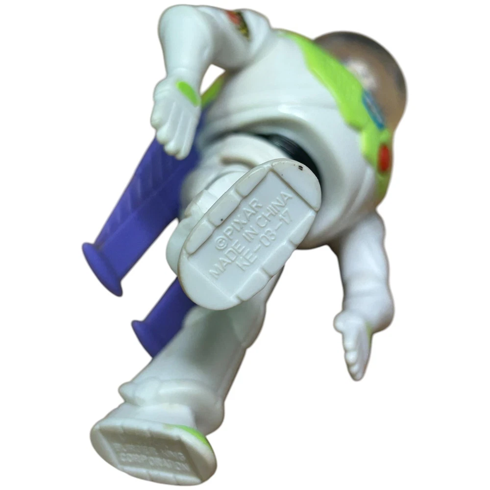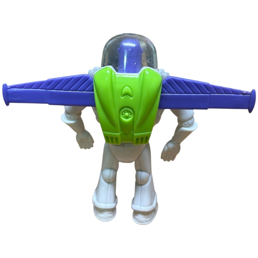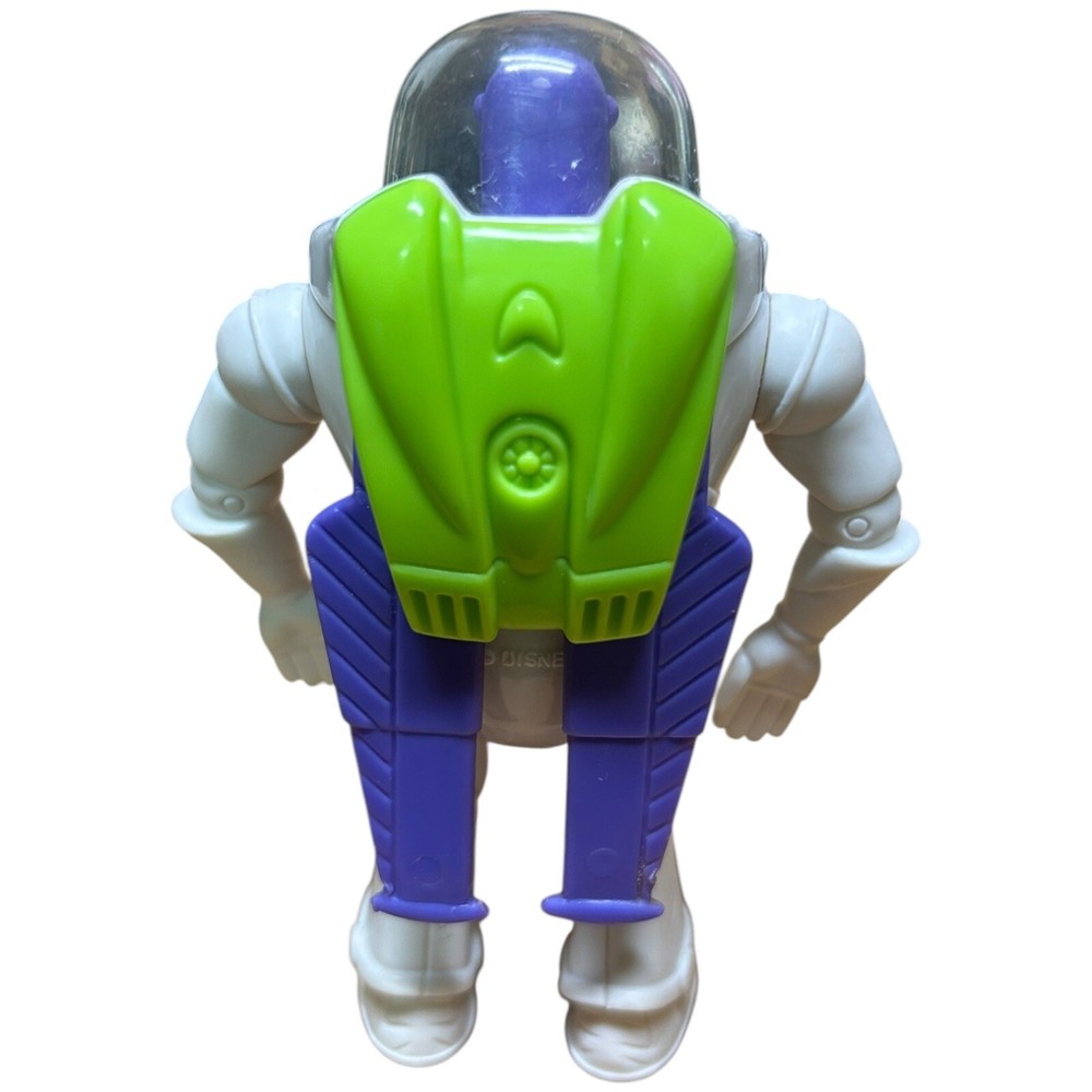 The product is a vintage Burger King kid's meal toy from 1996 featuring Buzz Lightyear from Disney Pixar's Toy Story. It is a 4-inch figurine of Buzz Lightyear and is part of a toy promotion tied to the popular animated film. Made in China, this toy is recommended for ages 4 and up.