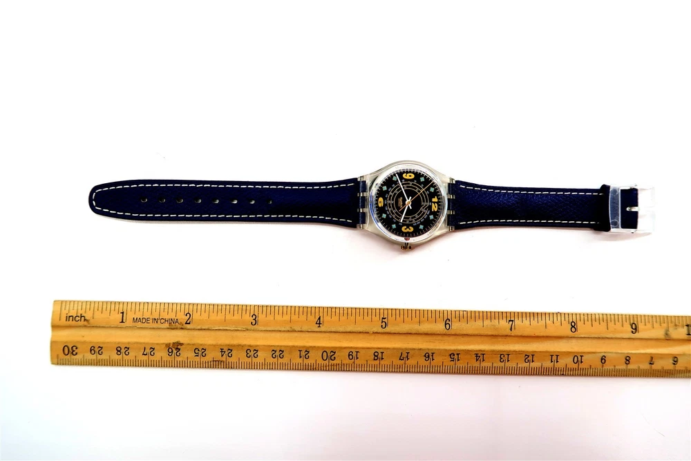 NEW Swatch Watch AIRE GK210 with Case and Papers 1996 NOS Gents WORKS GREAT This eBay listing is for a New Old Stock classic SWATCH WATCH that comes as you see pictured in the listing and noted above. This watch is brand new and never used before and comes with the original case and paperwork. If you collect classic Swatch Watches, then please check out my other listings in my ebay store for many more great Swatches!! I just picked up close to 800 NOS Swatches from a local auction where I'm told the consignor had one of the largest Swatch watch collection in the United States. This was their 3rd and final auction of Swatches. In total, I purchased close to 1500+ Swatches!! Many of the watches are Special Editions, Limited Editions, Boxed Sets, Scarce and rare models plus other vintage Swatches as well. I will remove all of the old Swatch batteries and will replaced them with brand new batteries to verify that they are all are all in good working condition unless noted below. Please note that vintage and retro Swatches are on the smaller size compared to modern style watches. Most standard Gents (mens) watches have a 33mm-34mm case. I will try to include a picture with each new listing showing the watch next to a standard ruler so that you can see the true size of this collectible Swatch watch. Swatch name : AIRE Model : GK210 New Battery : Yes (due to age, the original battery was removed with a new battery installed) Features/Notes : Works Great! Circa 1996. Seller Location Reference - Box 67 BID IN CONFIDENCE – CHECK MY FEEDBACK! My goal is your satisfaction. I leave positive feedback right after the payment is received for all orders!! If you plan to leave anything less than positive feedback and 5 stars - please let me know so that I can work out any problems that you may have. I aim to please!! SHIPPING & HANDLING FOR US BIDDERS We ship ASAP upon payment as noted above within 1 business day 99% of the time!! We normally pack up your new treasures 2 - 3 times a day and ship using USPS and Fedex Ground so that you get your items in a timely fashion. As always - there is no charge for local pickup on any of my items!! SHIPPING AND HANDLING FOR INTERNATIONAL BIDDERS Import duties, taxes and charges are not included in the item price or shipping charges. These charges are the buyer’s responsibility. Please check with your country’s customs office to determine what these additional costs will be prior to bidding/buying.” THANK YOU AND HAVE A WONDERFUL DAY!! Powered by SixBit's eCommerce Solution