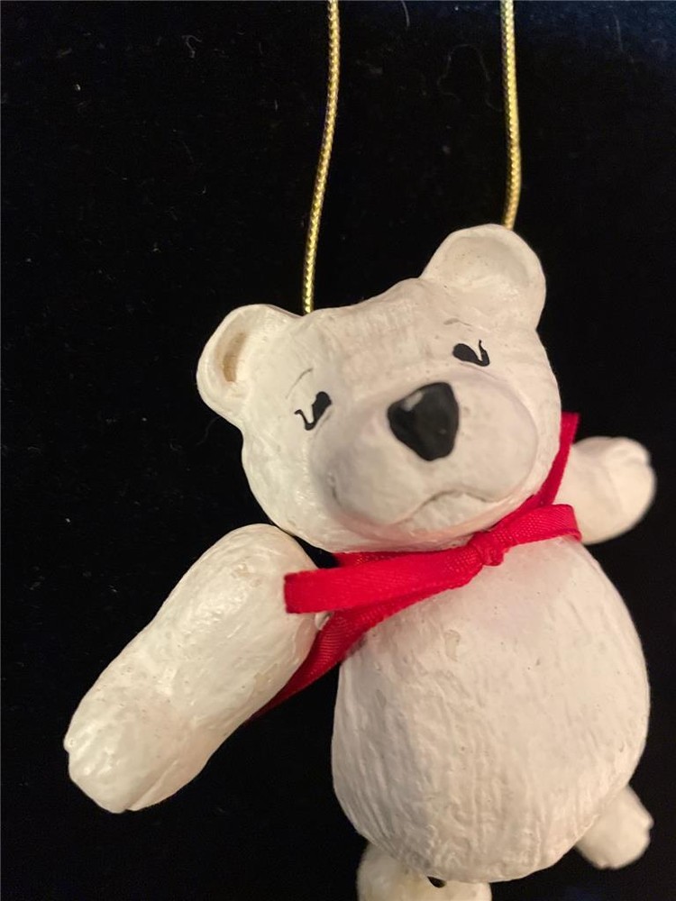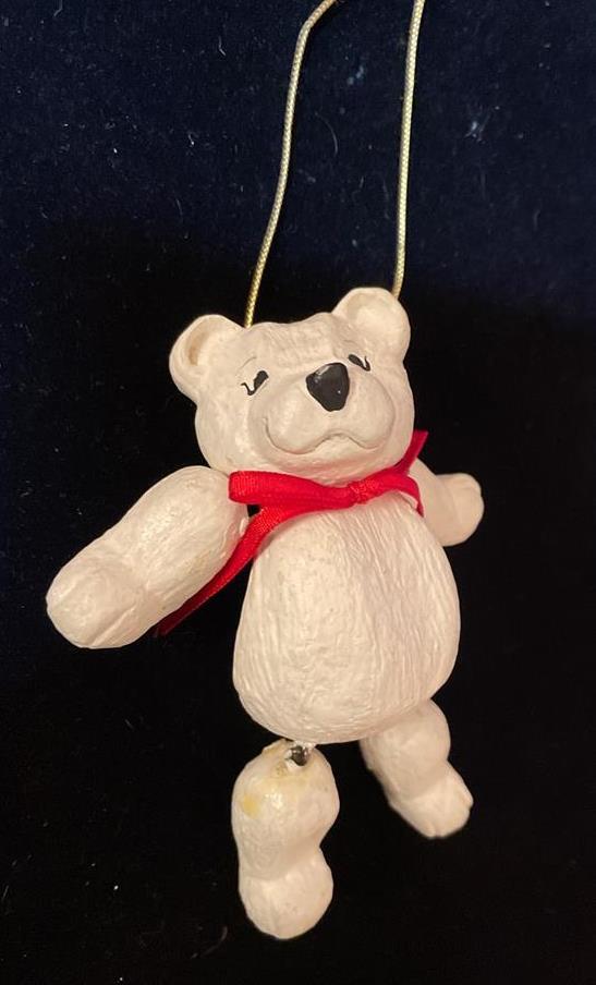 Vintage 1997 House of Hatten Jointed White Teddy Bear Christmas Ornament 5 Inch