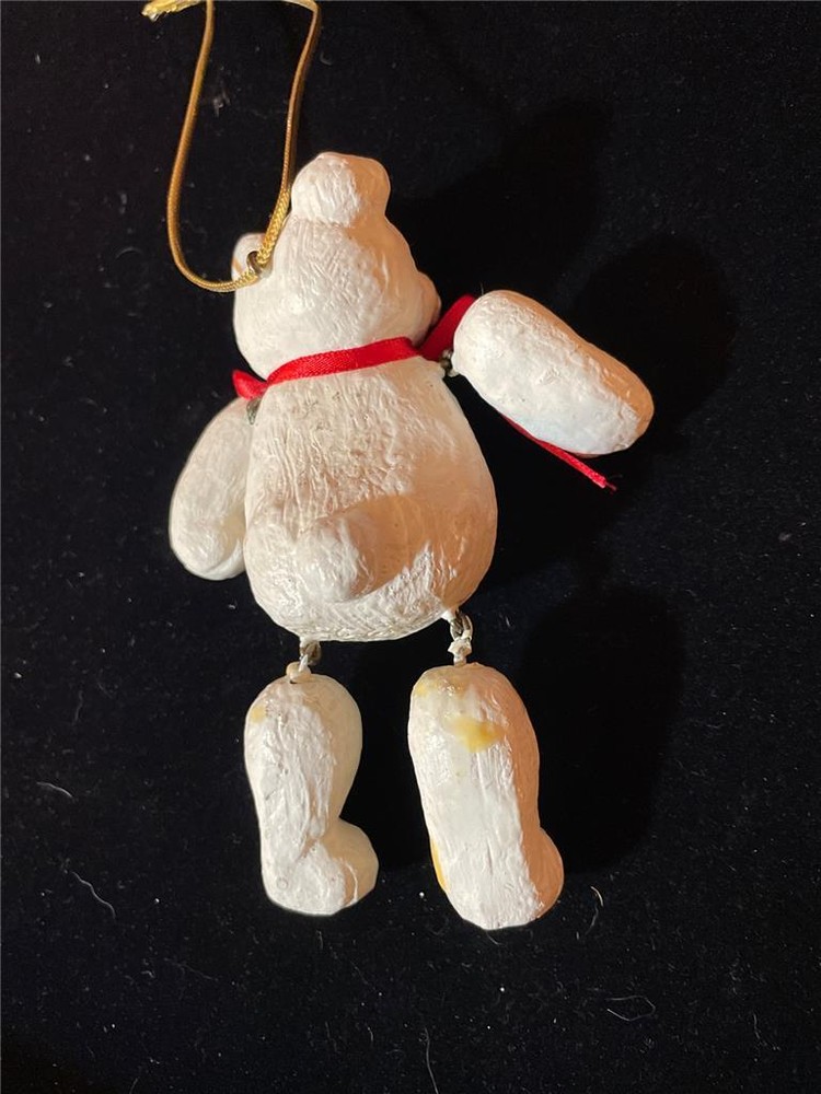 VINTAGE HOUSE OF HATTEN CHRISTMAS ORNAMENT JOINTED TEDDY BEAR 5" WHITE 1997 VINTAGE HOUSE OF HATTEN CHRISTMAS ORNAMENT JOINTED TEDDY BEAR 5" WHITE 1997 Click images to enlarge Description For sale is a House of Hatten Christmas ornament; a white teddy bear with jointed legs. He's from 1997; 5" tall and has a red ribbon around his neck. He has some yellowed glue on the back of one of his legs; otherwise in very good condition and very cute. Please ask any questions before purchasing. If you buy multiple items from me and would like to combine shipping, please put all items in your cart and buy together; then you should receive combined shipping. I try to ship in one day, and I appreciate being contacted (or feedback left) to let me know my items have arrived safely. Thanks for looking! Pictures sell! Auctiva offers Free Image Hosting and Editing. 300+ Listing Templates! Auctiva gets you noticed! The complete eBay Selling Solution. Track Page Views With Auctiva's Counter