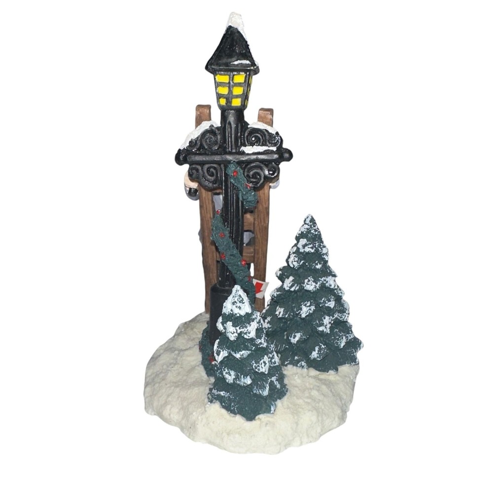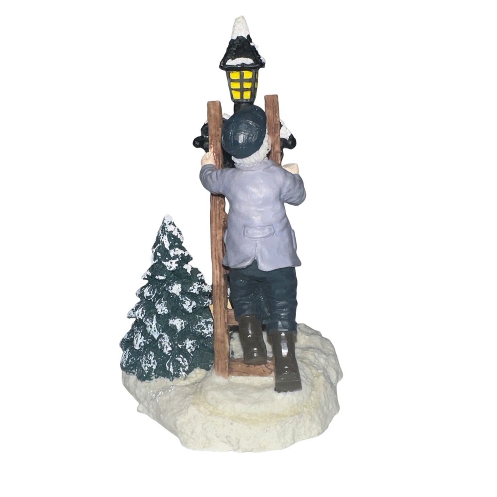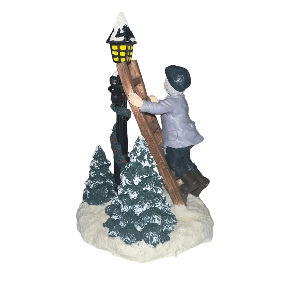 Features: • Brand: Village Square by Mervyn's • Type: Village Pieces • Style: Man climbing a ladder up to a light post, Christmas trees • Date: 1997 • Condition: Light dirt spotting, Piece broken off of hand • Other: Christmas, Holiday, Vintage, Retro • Pattern: Solid, Abstract • Made in China Measurements are Approximate: Height: 5.5 in / 14 cm Width at base: 3.75 in / 10 cm Depth at Base: 3.5 in / 9 cm ***FOR DECORATION ONLY, NOT INTENDED TO BE A TOY*** Orders shipped within 1-2 business days. 1005000001
