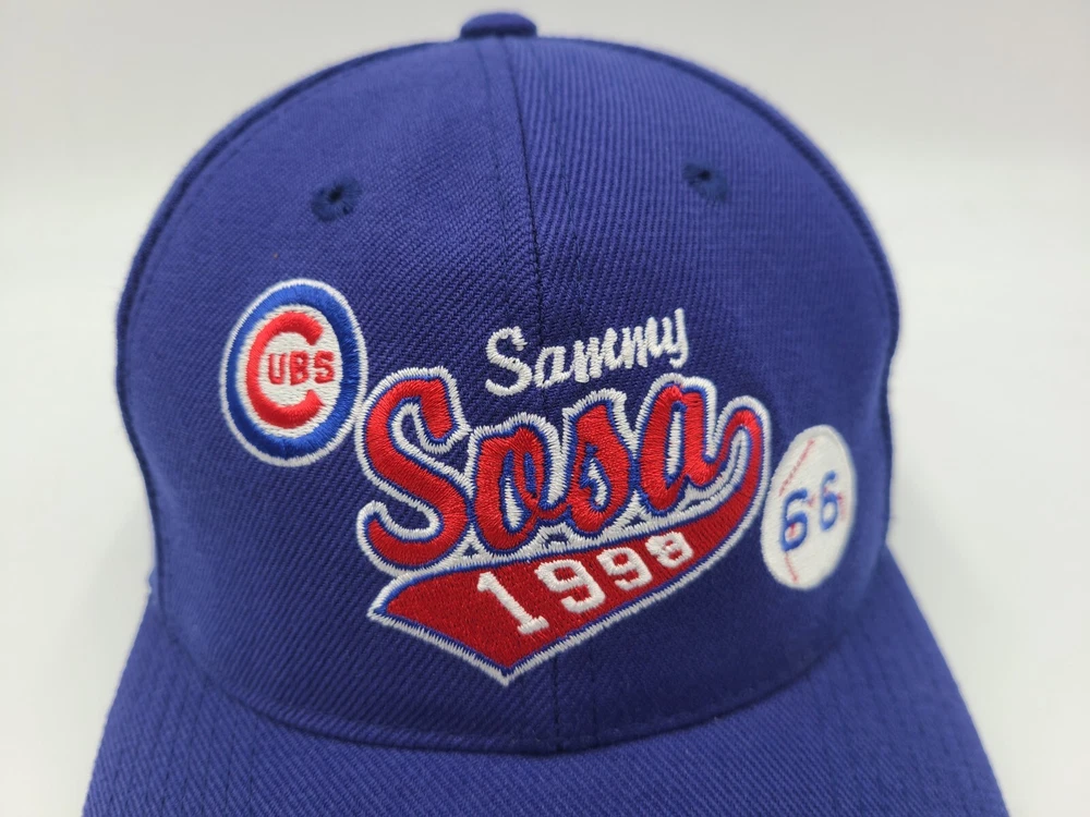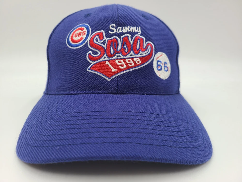 Vintage 1998 Chicago Cubs Sammy Sosa 66 Home Runs Snapback Hat Cap Men MLB Blue. EACH ADDITIONAL HAT PURCHASED IS ONLY $1 ADDED SHIPPING!