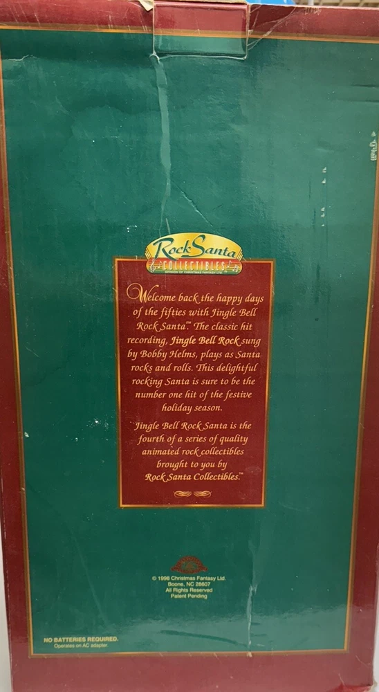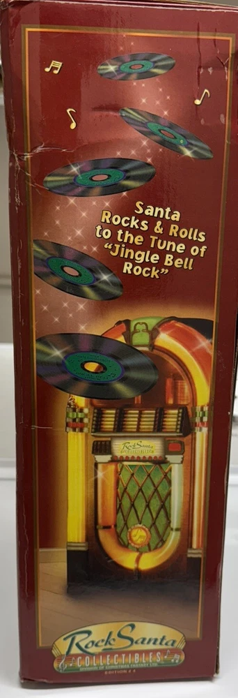 Get ready to add a touch of festive cheer to your Christmas décor with this Vintage 1998 Edition #4 Jingle Bell Rock Santa Animated Christmas Figure. Crafted with a multi-finish and mixed materials, this large-sized figurine features an asymmetrical shape with a traditional style and a fun and curiosity pattern. The Santa Claus character is perfect for any room and occasion, especially Christmas. This corded, standing figure has a red color and measures 5.5 inches in length, 10 inches in width, and 16 inches in height. It comes in its original packaging and is an original piece from the Jingle Bell Rock collection. This Christmas Fantasy figurine is perfect for adults and has a number of features, including an animated design, making it a great addition to your holiday décor.