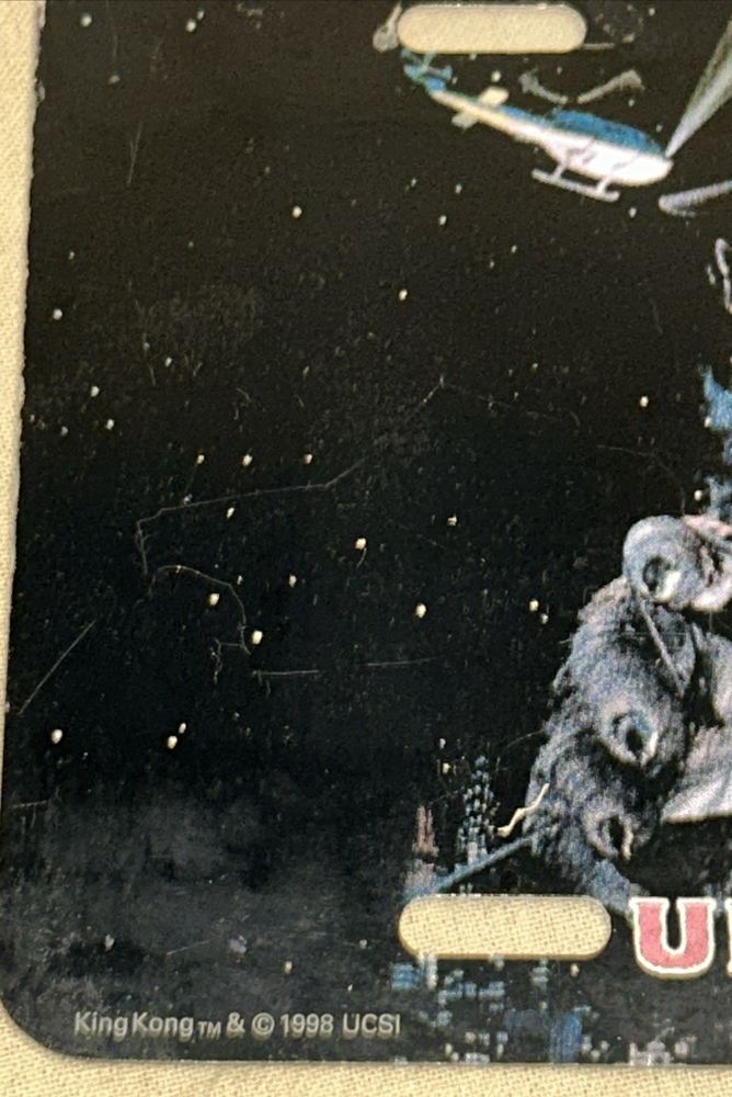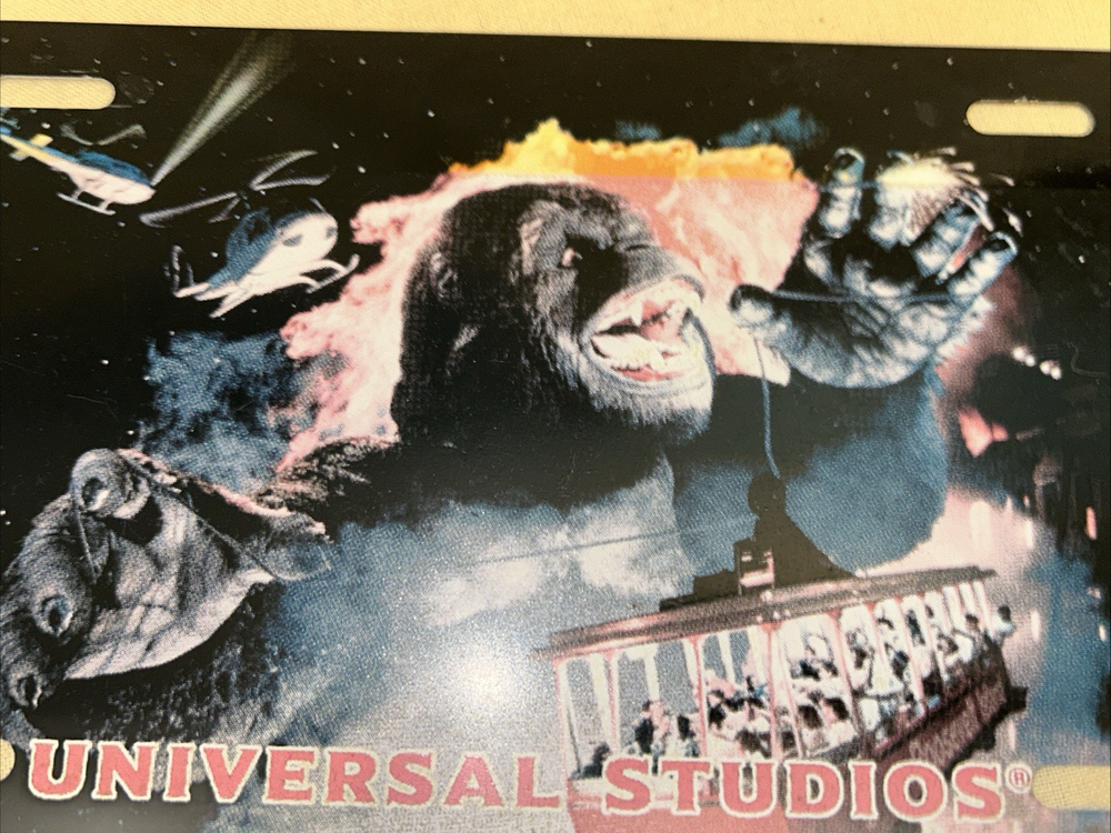 Vintage Car Tag. 1998 King Kong Universal Studio. 12" x 6", shows a brighter color along the top where it was attached to another plate, but good condition. Please see photos and check my other sales. I combine shipping.