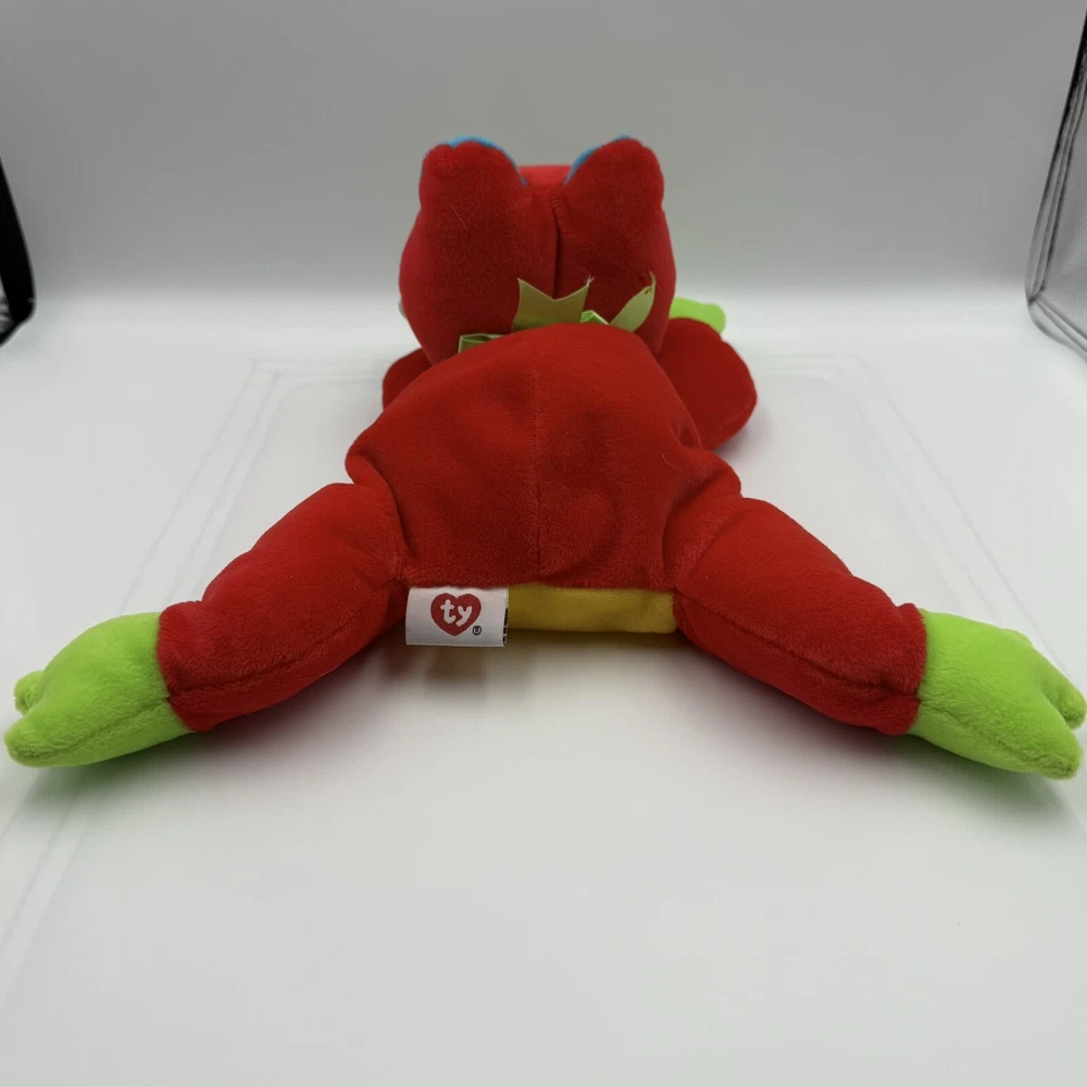 Vintage 1998 Ty Ribbit Pillow Pal Red and Green Frog 15'' plush -Stuffed Animal
