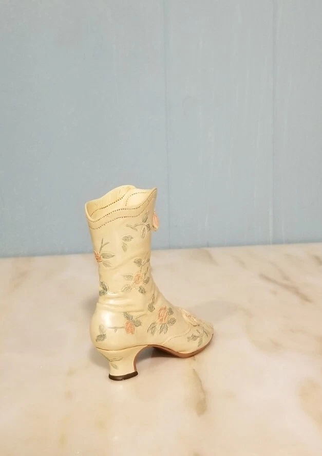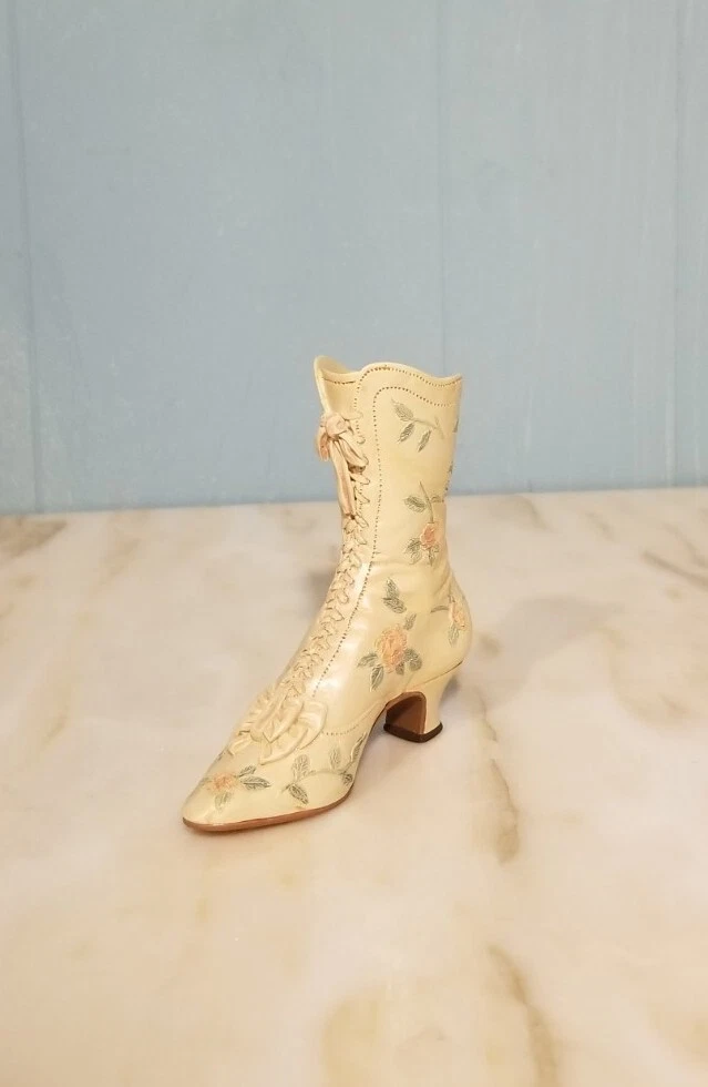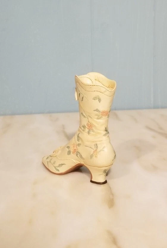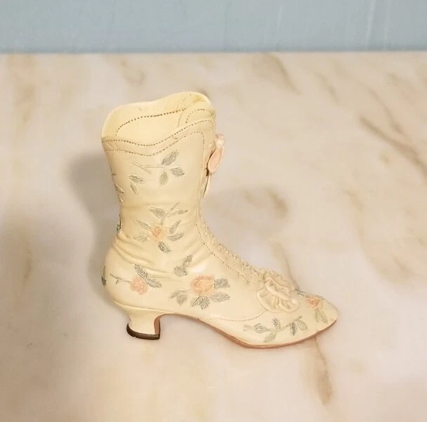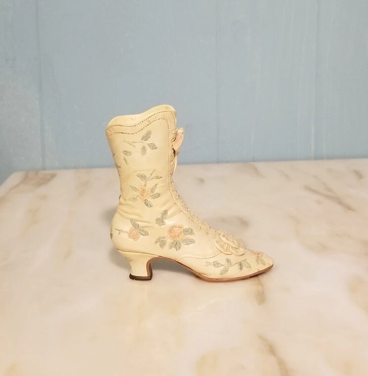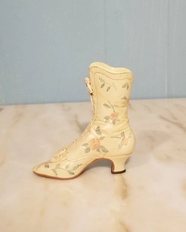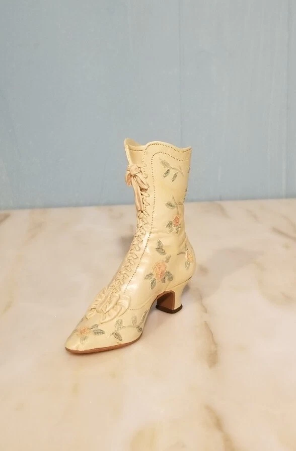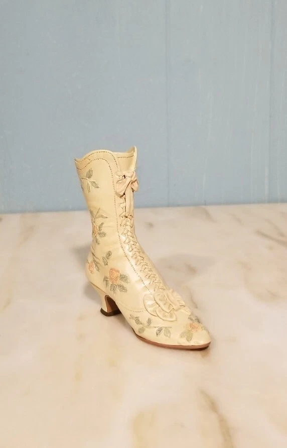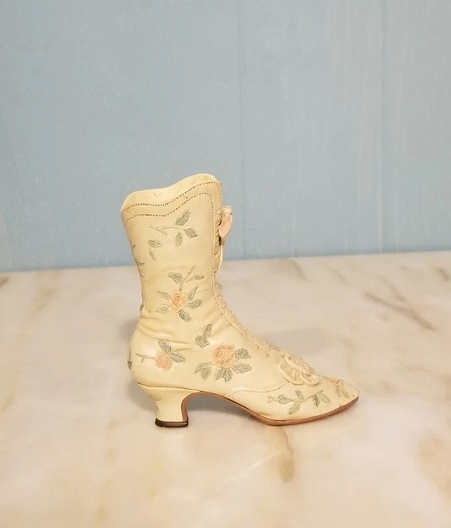 This is a vintage porcelain figurine of a Victorian Wedding Boot from the "Just the Right Shoe" collection by Willitts. It was manufactured in 1999. The small-sized figurine measures 3.75 inches in length and height, with a width of 1 inch and a weight of 4 oz. The Victorian-style boot features a white color and a Victorian Wedding Boot pattern, making it a perfect decorative collectible for any room. You Will Receive The Item(s) Pictured. We Do COMBINE SHIPPING So Take A Look At Our Other Items. If You Would Like To Take Advantage Of The COMBINED SHIPPING Please Wait For Invoice Before Payment. If You Have Any Questions We Will Be Happy To Answer Them.