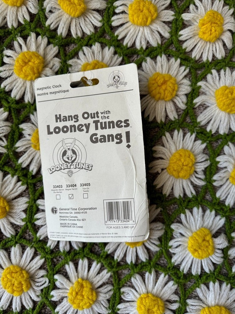 Vintage Looney Tunes new in packaging dead stock magnetic clock of the tazmanian devil Attaches to refrigerators, lockers or any magnetic surface "Magne-Taz-im" General Time Corporation Warner Brothers 1999
