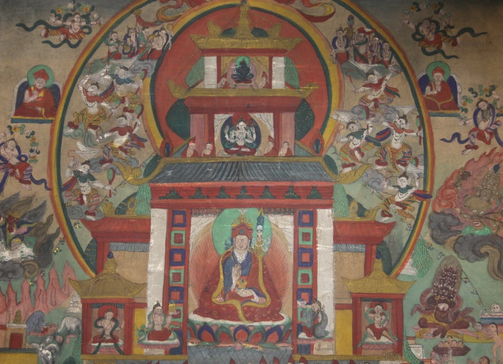 Vintage 19th Century Tibetan Buddhist Thangka of Padmasambhava