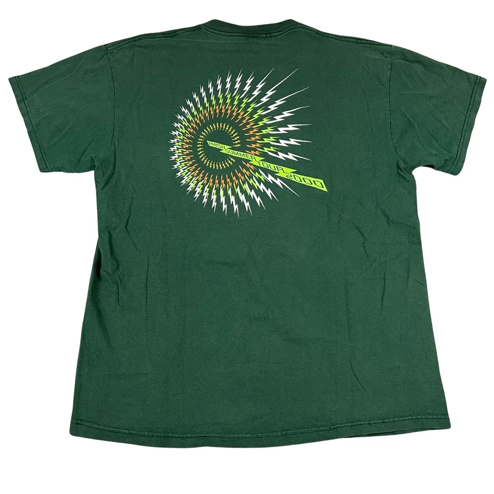 Vintage 2000 phish tour band concert music green t shirt. Beautiful. Measures 22x29.5. Minor pit staining. Please check measurements before purchasing. I do my best to show any flaws in pictures. Quick shipping! Bundles encouraged! @ants_haul on Instagram.
