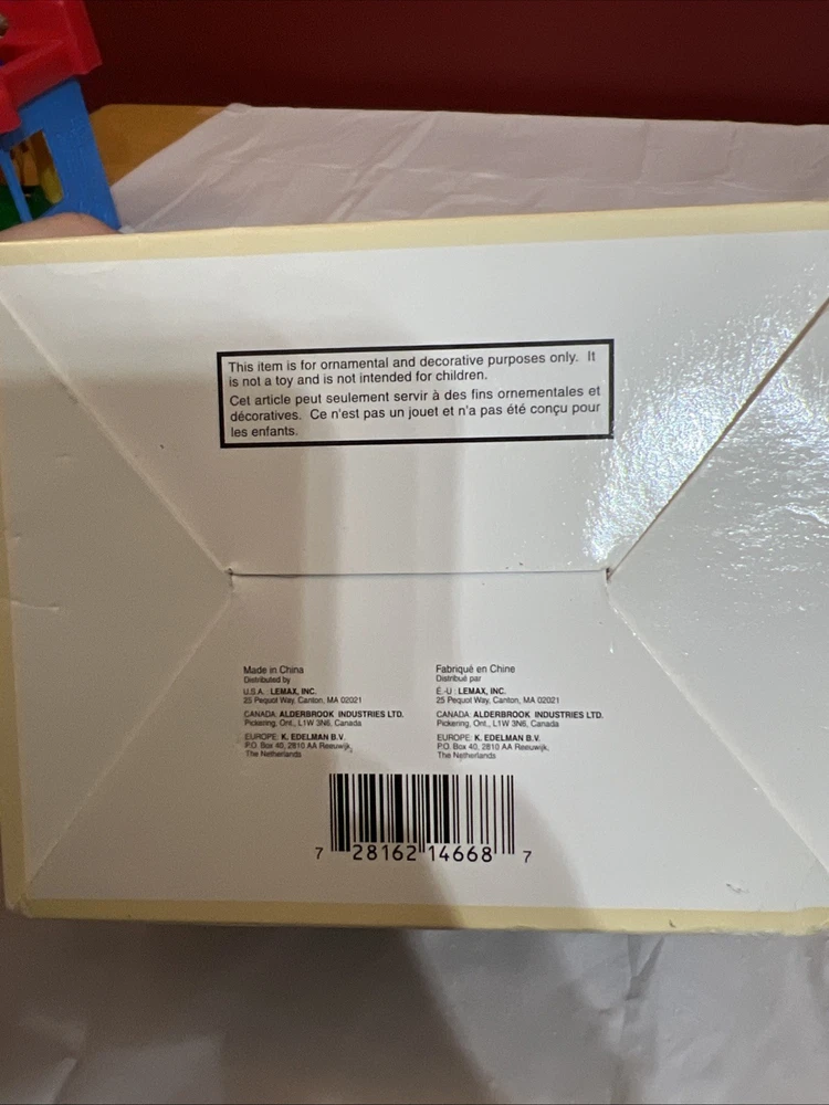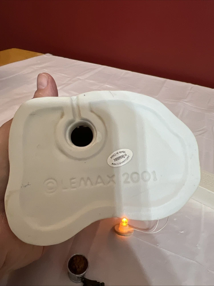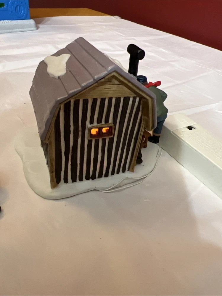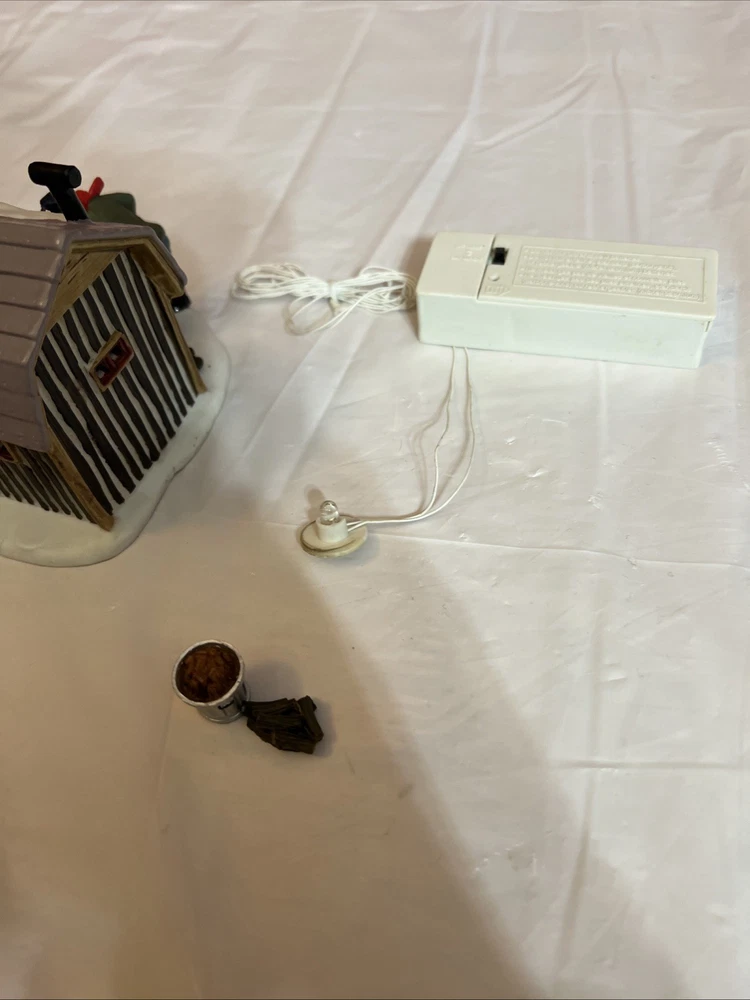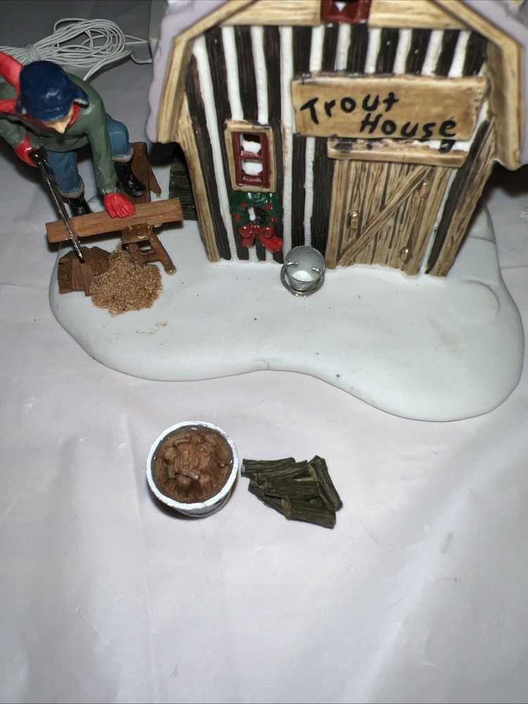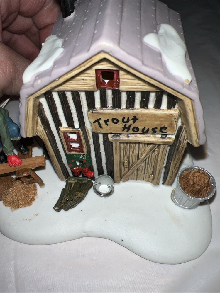 This vintage Lemax Village Collection house from 2001 is sure to add a charming touch to any Christmas display. The Trout House features intricate details and multicolor accents that showcase the Victorian style. Made from high-quality porcelain, this original piece comes in its original box for safekeeping. Perfect for collectors or as a holiday decoration, this house is part of the Lemax Village Collection and is designed to be placed in any room. The Trout House is a great addition to any Christmas occasion and is sure to bring joy to all who see it. The trash can and small pile of wood needs to be glued back on. As you can see via pictures it does work new batteries just put in so it could be tested.