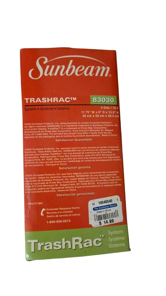 Vintage 2005 Sunbeam Trashrac Plastic Rack Kitchen 3 Gallon Garbage Can 83030