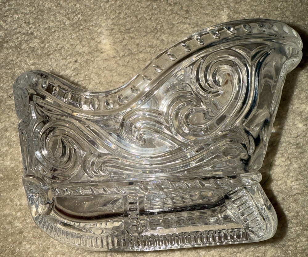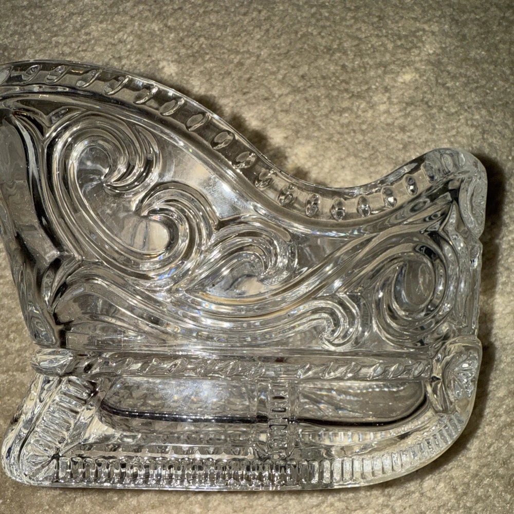 Vintage 24% Lead Crystal Santa Sleigh Candy Dish Heavy Christmas Centerpiece Holiday Sale