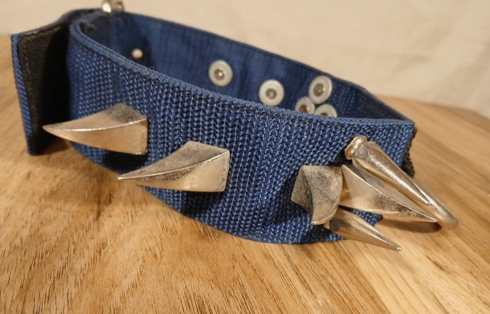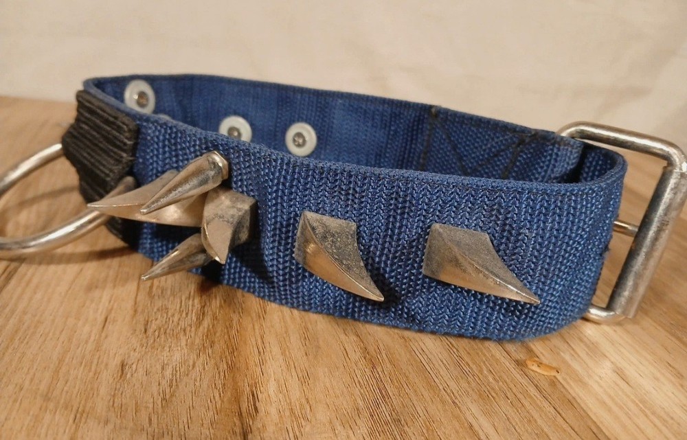 Vintage 25" Heavy Duty Dog Collar With Spikes Blue 2" Wide