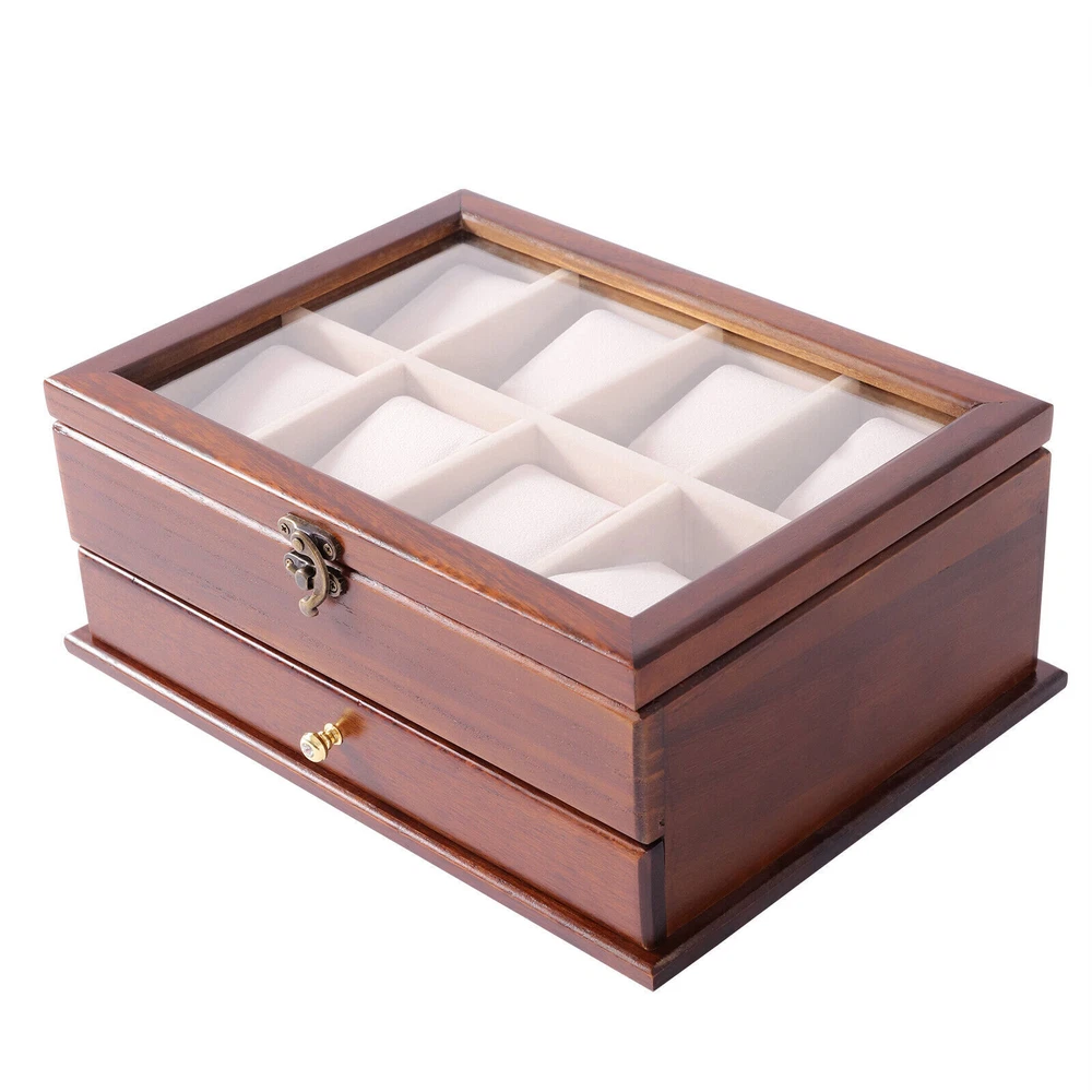 Vintage 2-Layer Sycamore Wood Watch and Jewelry Storage Case