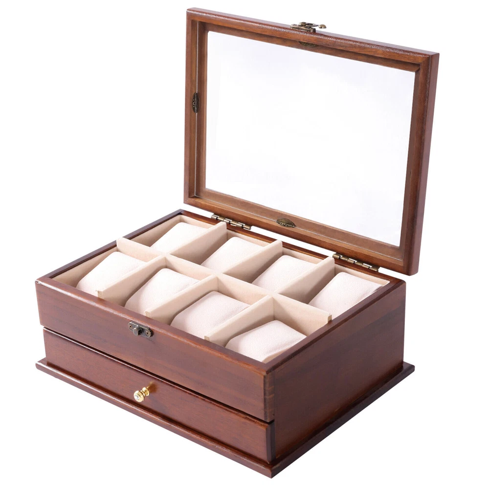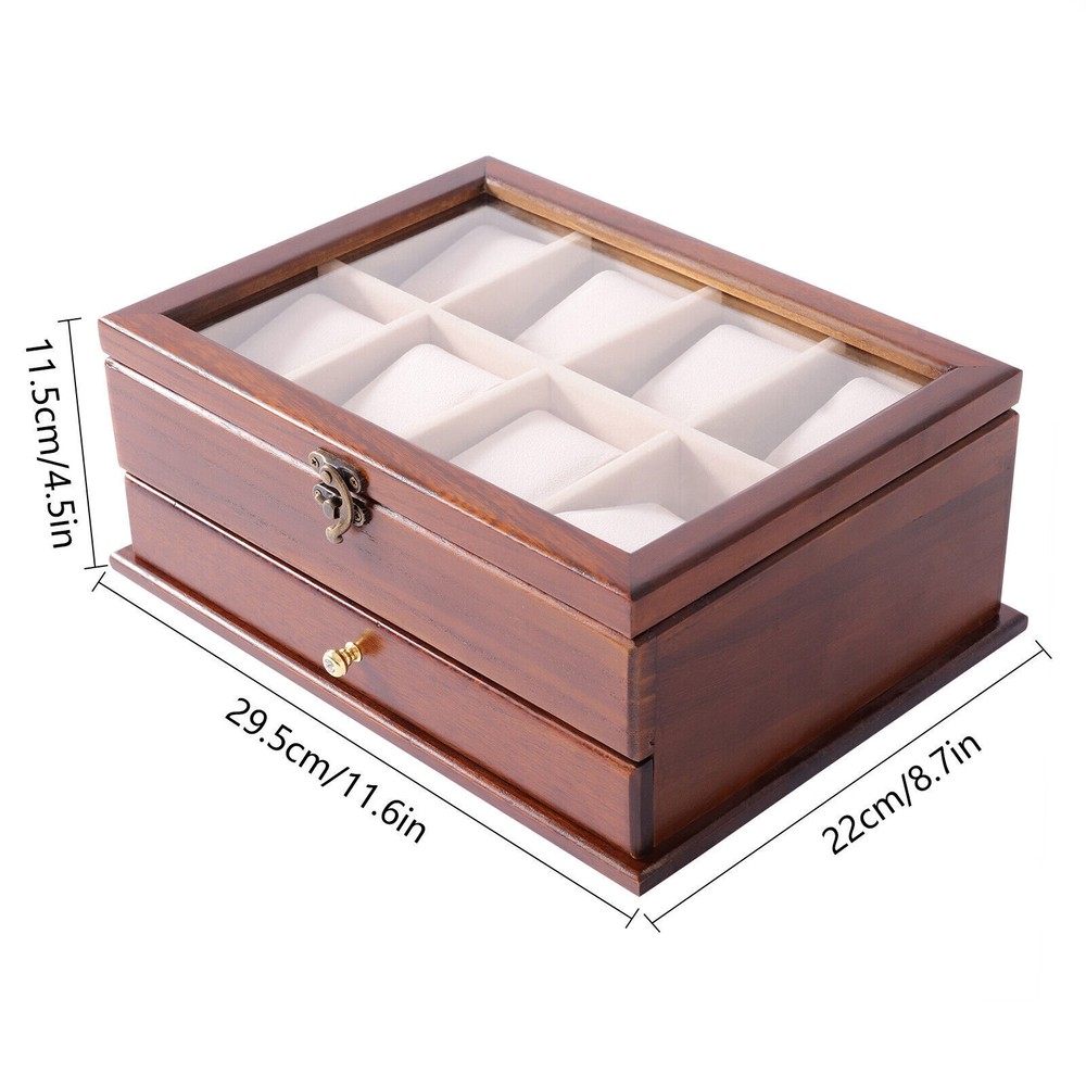 Application It Can Be Used to Store Watches, Bracelets, Necklaces, Earrings, Rings, Brooches and Other Accessories. Specification Color: Vintage Brown Material: Sycamore Wood + Flocked Fabric Partition Material: Density Board Skylight Material: Acrylic Pillow Material: Pearl Cotton Surface Treatment: Spray Painting Closure Type: Locking Latch Number of Layers: 2 Number of Watch Compartments: 8 Packing Size: 34.5*26.5*17cm/13.58*10.43*6.69in Product Size: 29.5*22*11.5cm/11.6*8.7*4.5in Gross Weight: 1.8kg/3.96lbs Net Weight: 1.3kg/2.86lbs Package Included 1* Watch Box Vintage Watch Box 2 Layers Sycamore Wood Jewelry Large Storage Case Organizer Description~~ Description A Watch Is Not Only a Timepiece but Also a Reflection of Your Personality That Deserves an Exclusive Room. This Watch Box Is a Stunning Masterpiece for Watch Collection Display and Storage. with Its Wooden Box, Soft Pillow, and Flocked Fabric Lining, Your Watch Jewels Will Stay Safe and Comfortable As Time Passes. This Watch Box Will Be an Ideal Choice for You! Application It Can Be Used to Store Watches, Bracelets, Necklaces, Earrings, Rings, Brooches and Other Accessories. Specification Color: Vintage Brown Material: Sycamore Wood + Flocked Fabric Partition Material: Density Board Skylight Material: Acrylic Pillow Material: Pearl Cotton Surface Treatment: Spray Painting Closure Type: Locking Latch Number of Layers: 2 Number of Watch Compartments: 8 Packing Size: 34.5*26.5*17cm/13.58*10.43*6.69in Product Size: 29.5*22*11.5cm/11.6*8.7*4.5in Gross Weight: 1.8kg/3.96lbs Net Weight: 1.3kg/2.86lbs Package Included 1* Watch Box Key Features Sturdy and Durable: It Is Made of High-quality Sycamore Wood, Which Is Durable and Environmentally Friendly. the Surface Is Treated with Spray Paint, Making It Waterproof and Anti-corrosive to Ensure Long Service Life. Large Storage Space: with Two Levels of Storage, Including Eight Watch Slots and a Drawer, It Can Store a Large Amount of Jewelry and Eight Watches to Meet Your Daily Needs. There Is Plenty of Space Between the Cover and the Pillow to Accommodate Watches of All Sizes. Compartment Storage: the Compartments of the First Layer Are Specifically Designed for Watches and Bracelets. the Second One Is a Drawer with Dividers for Rings, Necklaces, Earrings, Etc. Its Compartmentalized Design Allows for Sorted Storage While Preventing Your Precious Watches and Jewelry from Rubbing Against Each Other. Carefully Designed Pillow: the Pillow Is Made of Soft Pearl Cotton and Wrapped by Flocked Fabric on the Outside, Which Is Non-slip and Comfortable to Better Protect and Display Your Watch. Vintage Appearance: This Watch Box Comes in Vintage Brown Color, Retaining the Original Wood Texture to Create a Charming Vintage Style. It Complements Your Noble Temperament While Adding Elegance to Your Home Decor. Soft Lining: Each Compartment of the Watch Box Is Lined with High-quality Flocked Fabric to Provide You with Better Protection for Your Watches and Jewelry from Dust, Dampness, and Scratching. An Ideal Gift: the Vintage Look and Exquisite Workmanship of This Fountain Watch Box Would Be an Ideal Gift for Someone Special like Your Father, Brother, Husband, Friend, Boss, or Fountain Watch Collector. Direct Use: This 2-Layer Watch Box Can Be Used Directly Without Extra Installation, Saving Your Time and Energy. Easy to Clean: It Has a Painted Finish to Make It Easy to Clean. You Can Easily Remove Dust and Stains from It with Just a Damp Rag. Details Quality Hinges: the Hinge Is Made from High-quality Hardware Which Is Strong and Durable. It Has Been Tested Many Times to Open and Close, so You Can Use It with Confidence. Sophisticated Handle: the Drawer Comes with a Sophisticated Handle That Allows You to Easily Open or Close the Drawer, Making It Very Practical. Visible Skylight: the Lid of the Watch Box Has a Transparent Skylight Made of Acrylic, Which Not Only Prevents Dust but Also Provides a Clear View of the Watch's Storage Position for Easy Access and Better Display. Exquisite Latch: the Watch Box Features a Vintage Metal Latch to Make Your Watch Box More Stylish and Sophisticated. and the Latch Can Lock the Box up and Increase the Security of the Watch Box. Anti-slip Pads: It Has Four Non-slip Pads on the Bottom for More Stable Placement. It Also Prevents the Table from Being Scratched. Notes Please Allow the Slight Color Difference Caused by the Shooting Light and 1-3cm Error Due to Manual Measurement, and Make Sure You Do Not Mind Before Ordering. tu1 Payment Delivery details Terms of sales About us Contact us Payment We accept ebay payment 。 Fees such as import duties, taxes are not included in the item price or shipping costs. These charges are the buyer's responsibility. Delivery details Shipping: 2-9 working days to: USA Terms of sales We maintain high standards of excellence and strive for hundred percent customer satisfaction. Feedback is very important to us. We hope that you contact us immediately before you give neutral or negative feedback, so that we can address your concerns. It is impossible to address issues if we do not know about them! About us Your satis faction is our ultimate goal. We work hard to earn your trust and future business. Our certified technicians have tested each item before shipping. The unit comes with 1 year limited warranty on all manufacturing defects. a) If you receive a defective item, you may return it or ask for a discount. Please contact us within 14 days after you receive the package. b) What you returned must be intact and in its original packaging as re? u. Customer is responsible for shipping costs of the returned item. c) We will cover the cost of shipping back t with the shipping rate indicated in the registration page. We will send you a new unit or refund the full payment you paid. Thank you. Contact us Business Hour Business Hour: Monday To Friday: 8:30 AM to 5:00 PM (Beijing China time) Due to time zones, our reply to your questions may 