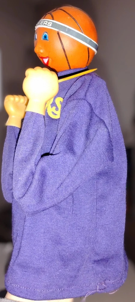 Show your love for the Los Angeles Lakers with this vintage hand puppet featuring the iconic #33 lakers fighting Bobblehead. Perfect for any basketball fan, this hand puppet is a great addition to your collection of sports memorabilia. Represent your favorite team in style with this one-of-a-kind item.
