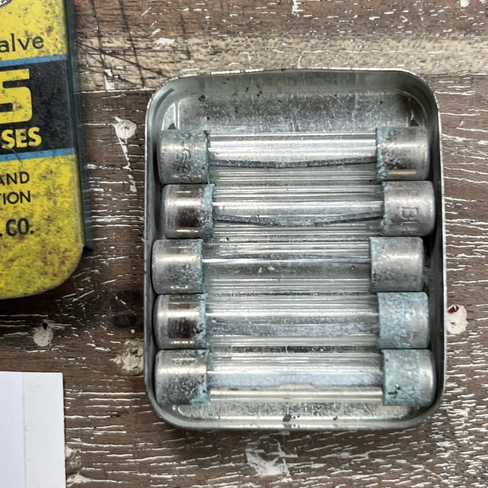 Vintage 3AG-30 Bussman MFG CO BUSS Glass Tube Fuses Metal Container Lot — LATz.14 FREE SHIPPING Great old full box of fuses Original box - ok shape Fuses are all there, little tarnished with age