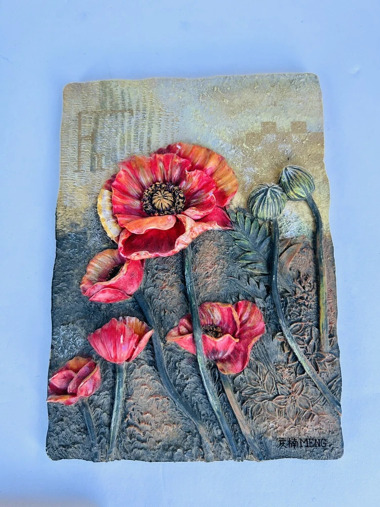Type: Plaque Brand: Meng Item Height: 6.25 in Pattern: Floral Material: Ceramic Theme: Art