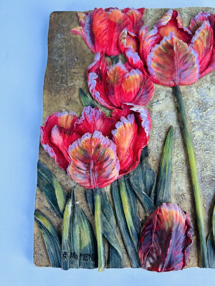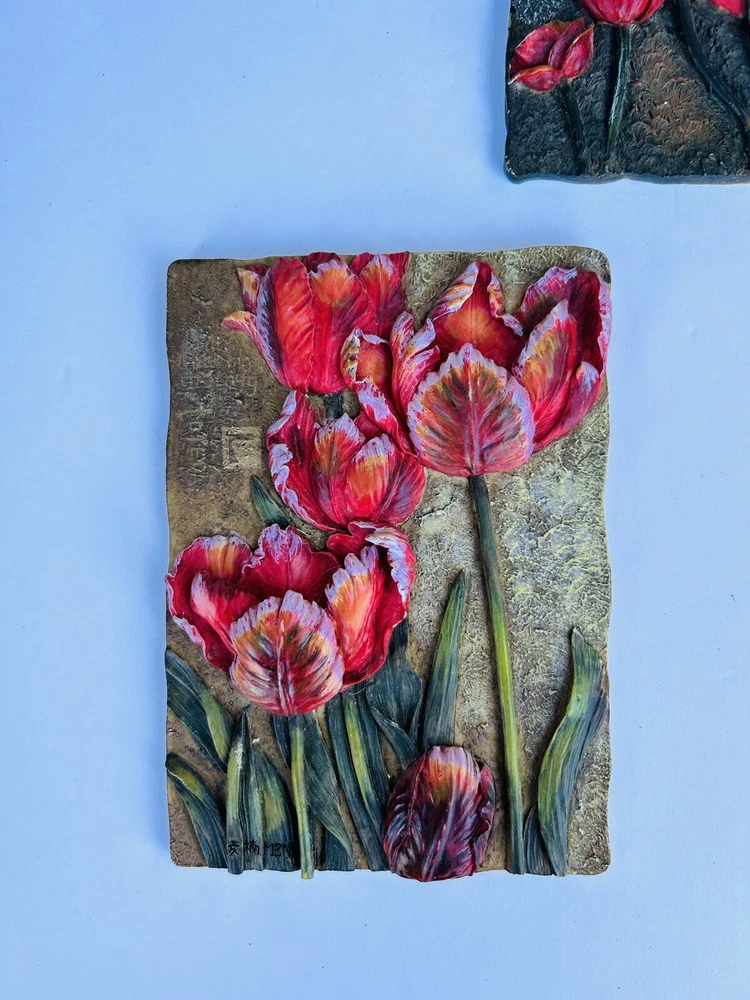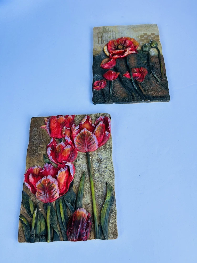 Vintage 3D Wall Plaque Picture Art Floral  6.25" x 4.5" by MENG Set of 2