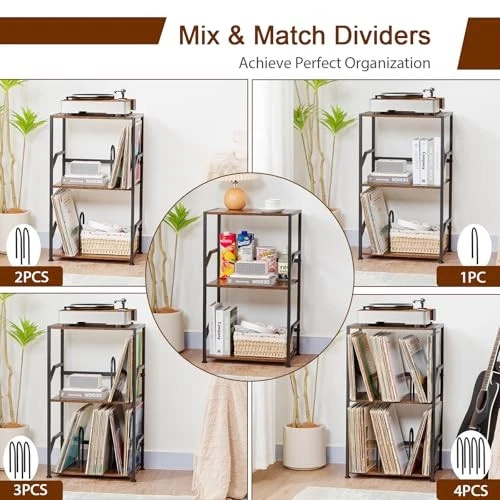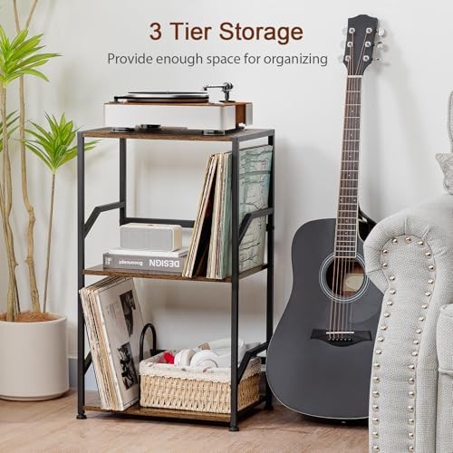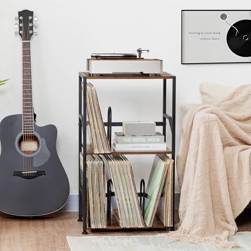 Absolutely love this record player stand! The rustic brown finish looks amazing in my living room, and it holds all my vinyls neatly with room to spare. The removable dividers let me customize the shelves, and the top is perfect for my turntable. Super sturdy, easy to assemble, and arrived fast—definitely a great buy for any vinyl lover!