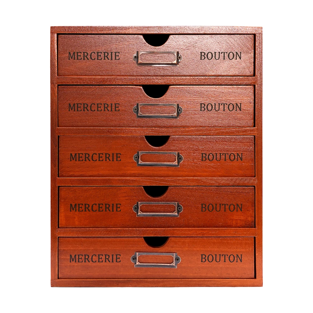 Specifications Colors: Brown Layer: 5 Layers Material: Pine Wood Surface Treatment: Spray Painting Gross Weight: 3.75kg/8.24 Lbs Net Weight: 3.5kg/7.72 Lbs Package Size: 26.5*19*32.5cm/10.43*7.48*12.8" Product Size: 25*17.5*31cm/9.84*6.89*12.2" Each Drawer Size: 23*5cm/9.06*1.97" Package Included 1* 5-Layer Drawer Storage Cabinet Vintage 5 Layers Large Jewelry Organizer Wooden Storage Box Case With 5 Drawers About this item Are Your Items Often Cluttered and Cannot Be Found? Do You Have Too Many Cosmetics and Tools Without a Large Enough Storage Box? If You Answered Yes to These Questions, You Shouldn't Miss This 5-Drawer Storage Cabinet. the 5-Drawer Storage Design Allows You to Store Many Different Types of Items. the Wood and Spray Paint Make This Item Not Only Very Durable but Also Very Good-looking. It Is Both an Organizer and a Home Decor. Specifications Colors: Brown Layer: 5 Layers Material: Pine Wood Surface Treatment: Spray Painting Gross Weight: 3.75kg/8.24 Lbs Net Weight: 3.5kg/7.72 Lbs Package Size: 26.5*19*32.5cm/10.43*7.48*12.8" Product Size: 25*17.5*31cm/9.84*6.89*12.2" Each Drawer Size: 23*5cm/9.06*1.97" Package Included 1* 5-Layer Drawer Storage Cabinet Key Highlights Smooth Push and Pull : Each Drawer of This Item Has the Right-sized Slot. This Makes It Very Smooth to Push and Pull Without Jamming, so It Is Effortless to Use and Can Bring You a Good Mood. Large Capacity: This Drawer Storage Cabinet Has 5 Drawers. You Can Sort and Place Many Things Inside. a Large Enough Space Makes Storage More Convenient. Full Pull-out Drawer: the Drawer of This Storage Cabinet Is a Full Pull-out Design, Which Can Display All the Things in the Drawer and Make It More Convenient for You to Get Them. Elegant Design: the Wood and Painted Surface Give This Item a More Textured Look. the Simple Retro Design Style Is Pervaded by the Flavor of Years of Sinking and Is Very Charming. This Unique Retro Style Can Match Well with Your Home. Environmentally-friendly and Durable: the Item Is Made of High-quality Pine Wood with an Environmentally Friendly Water Paint Surface, Which Is Not Only Harmful to Human Health but Also Very Strong and Durable. Landing Design: the Base of This Cabinet Is a Direct Landing Design, Which Prevents Dust from Entering the Bottom. This Avoids the Trouble of Cleaning the Bottom Gap Dust. It Is Very Clean and Beautiful. Space-saving: It Saves Space by Making Full Use of Vertical Space. This Storage Cabinet Can Hold Things Both Horizontally and Vertically. Easy to Access : Each of the Five Drawers Has a Handle That Makes It Easy for You to Pull the Drawer. Ideal Gift: This Drawer Storage Cabinet Has a Unique Design with a Beautiful Appearance and a Large Capacity with Practical Highlights. It Is an Ideal Gift for Valentine's Day, Mother's Day, Thanksgiving, Christmas and Weddings. Nice Surface Treatment: the Surface of This Storage Cabinet Is Painted, Which Not Only Makes It Look More Glossy but Also Can Play a Pest and Moisture-proof Effect. This Will Give It Longer Service Life. Details Placeable Top: the Top of This Item Is Flat and Can Hold Things, Which Is Not Only Easy to Access but Also Very Space-saving. Built-in Drawer Handles : the Handles of These Drawers Are a Built-in Semi-circle. You Can Easily Pull It Open and Do Not Worry About the Handle Loosing. This Is Both Beautiful and Practical. Clear Texture: This Cabinet Is Made of High-quality Pine Wood, Which Makes the Texture of the Surface of the Item so Original, Clear, and Beautiful, Making It Have Vintage and Elegant Highlights. Application This Item Can Be Used in Bedrooms, Living Rooms, Studies, Powder Rooms, Beauty Stores, Etc. for Neatly Storing Art Supplies, Office Supplies, School Supplies, Jewelry and Other Desktop Accessories. Notes Please Allow the Slight Color Difference Caused by the Shooting Light and 1-3cm Error Due to Manual Measurement, and Make Sure You Do Not Mind Before You Order. Payment Delivery details Terms of sales About us Contact us Payment We accept ebay payment 。 Fees such as import duties, taxes are not included in the item price or shipping costs. These charges are the buyer's responsibility. Delivery details Shipping: 2-9 working days to: USA Terms of sales We maintain high standards of excellence and strive for hundred percent customer satisfaction. Feedback is very important to us. We hope that you contact us immediately before you give neutral or negative feedback, so that we can address your concerns. It is impossible to address issues if we do not know about them! About us Your satis faction is our ultimate goal. We work hard to earn your trust and future business. Our certified technicians have tested each item before shipping. The unit comes with 1 year limited warranty on all manufacturing defects. a) If you receive a defective item, you may return it or ask for a discount. Please contact us within 14 days after you receive the package. b) What you returned must be intact and in its original packaging as re? u. Customer is responsible for shipping costs of the returned item. c) We will cover the cost of shipping back t with the shipping rate indicated in the registration page. We will send you a new unit or refund the full payment you paid. Thank you. Contact us Business Hour Business Hour: Monday To Friday: 8:30 AM to 5:00 PM (Beijing China time) Due to time zones, our reply to your questions may not be immediately. But within above working time, we will reply your email within 24 hours. If it's non-workdays, please kindly be patient and wait till Monday. Please contact us with ebay message. Please feel free to contact us if you have any questions. Monday To Friday: 8:30 AM to 5:00 PM (Beijing China time) Due to time zones, our reply to your questions may not be immediately. But within above working time, we will reply your email within 24 hours. If it's non-workdays, please kindly be patient and wait till Monday. Please contact us with ebay message. Please feel fre