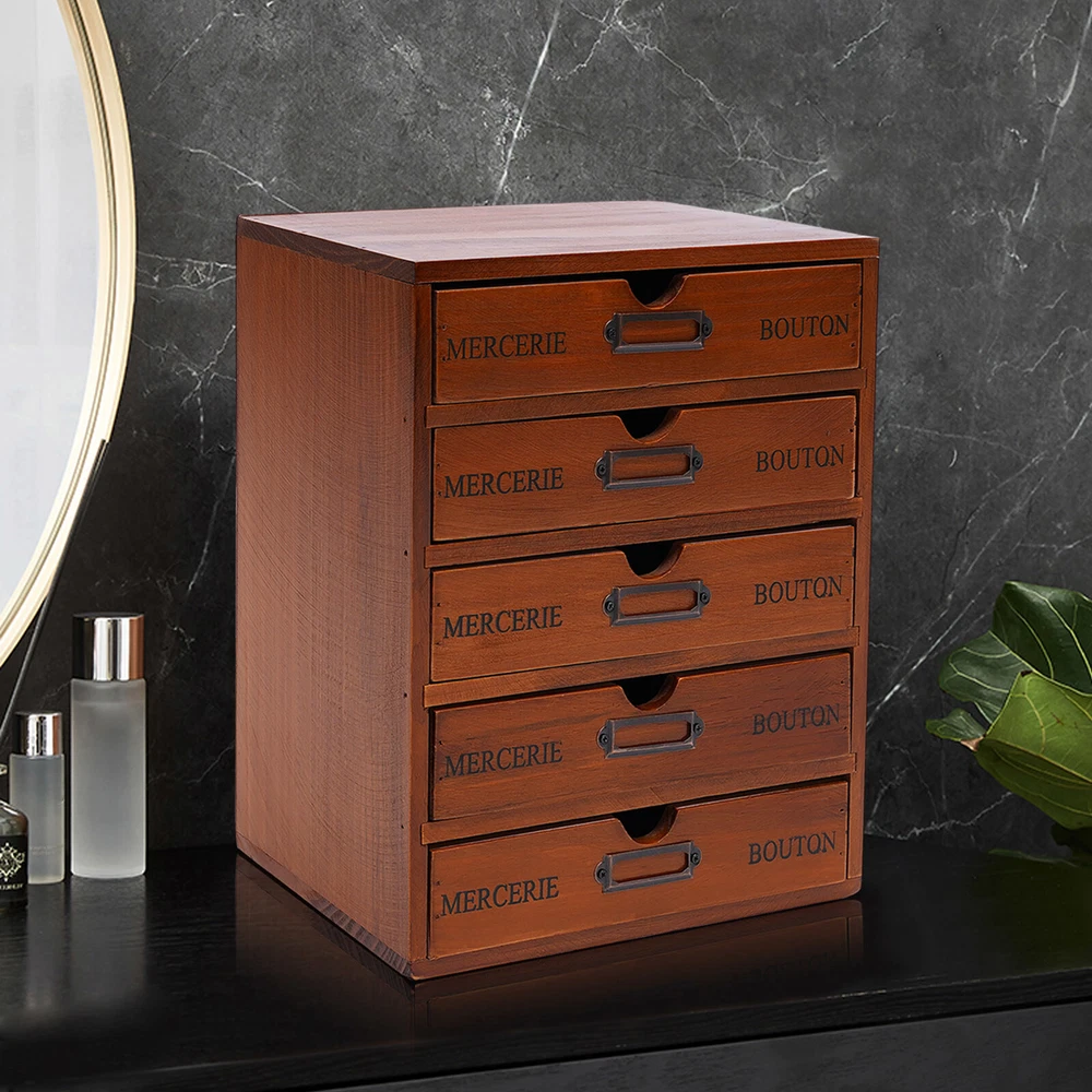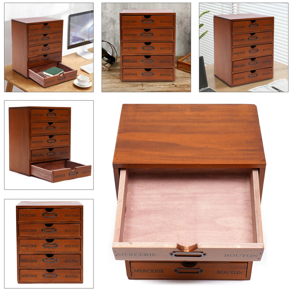 Specifications Colors: Brown Layer: 5 Layers Material: Pine Wood Surface Treatment: Spray Painting Gross Weight: 3.75kg/8.24 lbs Net Weight: 3.5kg/7.72 lbs Package Size: 26.5*19*32.5cm/10.43*7.48*12.8" Product Size: 25*17.5*31cm/9.84*6.89*12.2" Each Drawer Size: 23*5cm/9.06*1.97" Package Included 1* 5-layer Drawer Storage Cabinet Vintage 5 Layers Large Jewelry Organizer Wooden Storage Box Case With 5 Drawers Description Are Your Items Often Cluttered and Cannot Be Found? Do You Have Too Many Cosmetics and Tools Without a Large Enough Storage Box? If You Answered Yes to These Questions, You Shouldn't Miss This 5-Drawer Storage Cabinet. the 5-Drawer Storage Design Allows You to Store Many Different Types of Items. the Wood and Spray Paint Make This Item Not Only Very Durable but Also Very Good-looking. It Is Both an Organizer and a Home Decor. Key Features Smooth Push and Pull : Each Drawer of This Item Has the Right-sized Slot. This Makes It Very Smooth to Push and Pull Without Jamming, so It Is Effortless to Use and Can Bring You a Good Mood. Large Capacity: This Drawer Storage Cabinet Has 5 Drawers. You Can Sort and Place Many Things Inside. a Large Enough Space Makes Storage More Convenient. Full Pull-out Drawer: the Drawer of This Storage Cabinet Is a Full Pull-out Design, Which Can Display All the Things in the Drawer and Make It More Convenient for You to Get Them. Elegant Design: the Wood and Painted Surface Give This Item a More Textured Look. the Simple Retro Design Style Is Pervaded by the Flavor of Years of Sinking and Is Very Charming. This Unique Retro Style Can Match Well with Your Home. Environmentally-friendly and Durable: the Item Is Made of High-quality Pine Wood with an Environmentally Friendly Water Paint Surface, Which Is Not Only Harmful to Human Health but Also Very Strong and Durable. Landing Design: the Base of This Cabinet Is a Direct Landing Design, Which Prevents Dust from Entering the Bottom. This Avoids the Trouble of Cleaning the Bottom Gap Dust. It Is Very Clean and Beautiful. Space-saving: It Saves Space by Making Full Use of Vertical Space. This Storage Cabinet Can Hold Things Both Horizontally and Vertically. Easy to Access : Each of the Five Drawers Has a Handle That Makes It Easy for You to Pull the Drawer. Ideal Gift: This Drawer Storage Cabinet Has a Unique Design with a Beautiful Appearance and a Large Capacity with Practical Features. It Is an Ideal Gift for Valentine's Day, Mother's Day, Thanksgiving, Christmas and Weddings. Nice Surface Treatment: the Surface of This Storage Cabinet Is Painted, Which Not Only Makes It Look More Glossy but Also Can Play a Pest and Moisture-proof Effect. This Will Give It Longer Service Life. Details Placeable Top: the Top of This Item Is Flat and Can Hold Things, Which Is Not Only Easy to Access but Also Very Space-saving. Built-in Drawer Handles : the Handles of These Drawers Are a Built-in Semi-circle. You Can Easily Pull It Open and Do Not Worry About the Handle Loosing. This Is Both Beautiful and Practical. Clear Texture: This Cabinet Is Made of High-quality Pine Wood, Which Makes the Texture of the Surface of the Item so Original, Clear, and Beautiful, Making It Have Vintage and Elegant Features. Application This Item Can Be Used in Bedrooms, Living Rooms, Studies, Powder Rooms, Beauty Stores, Etc. for Neatly Storing Art Supplies, Office Supplies, School Supplies, Jewelry and Other Desktop Accessories. Specifications Colors: Brown Layer: 5 Layers Material: Pine Wood Surface Treatment: Spray Painting Gross Weight: 3.75kg/8.24 Lbs Net Weight: 3.5kg/7.72 Lbs Package Size: 26.5*19*32.5cm/10.43*7.48*12.8" Product Size: 25*17.5*31cm/9.84*6.89*12.2" Each Drawer Size: 23*5cm/9.06*1.97" Package Included 1* 5-Layer Drawer Storage Cabinet Notes Please Allow the Slight Color Difference Caused by the Shooting Light and 1-3cm Error Due to Manual Measurement, and Make Sure You Do Not Mind Before You Order. Payment Delivery details Terms of sales About us Contact us Payment We accept ebay payment 。 Fees such as import duties, taxes are not included in the item price or shipping costs. These charges are the buyer's responsibility. Delivery details Shipping: 2-9 working days to: USA Terms of sales We maintain high standards of excellence and strive for hundred percent customer satisfaction. Feedback is very important to us. We hope that you contact us immediately before you give neutral or negative feedback, so that we can address your concerns. It is impossible to address issues if we do not know about them! About us Your satis faction is our ultimate goal. We work hard to earn your trust and future business. Our certified technicians have tested each item before shipping. The unit comes with 1 year limited warranty on all manufacturing defects. a) If you receive a defective item, you may return it or ask for a discount. Please contact us within 14 days after you receive the package. b) What you returned must be intact and in its original packaging as re? u. Customer is responsible for shipping costs of the returned item. c) We will cover the cost of shipping back t with the shipping rate indicated in the registration page. We will send you a new unit or refund the full payment you paid. Thank you. Contact us Business Hour Business Hour: Monday To Friday: 8:30 AM to 5:00 PM (Beijing China time) Due to time zones, our reply to your questions may not be immediately. But within above working time, we will reply your email within 24 hours. If it's non-workdays, please kindly be patient and wait till Monday. Please contact us with ebay message. Please feel free to contact us if you have any questions. Monday To Friday: 8:30 AM to 5:00 PM (Beijing China time) Due to time zones, our reply to your questions may not be immediately. But within above working time, we will reply your email within 24 hours. If it's non-workdays, please kindly be patient and wait till Monday. Please contact us with ebay message. Please feel free to conta