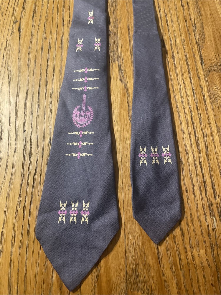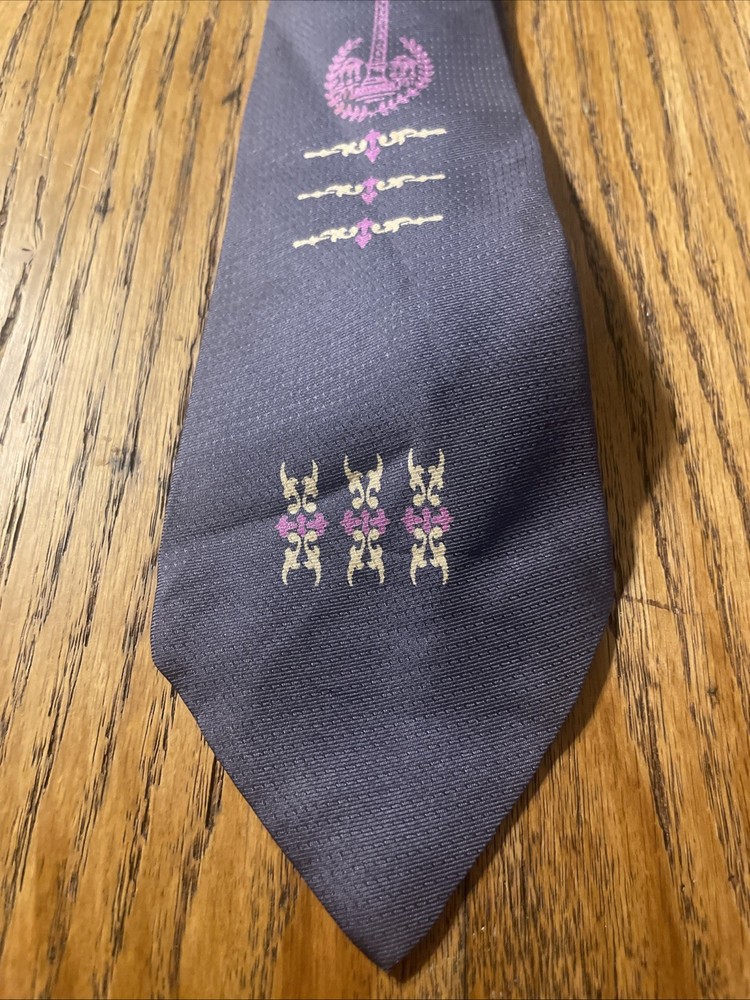 Material: 100% Silk Vintage: Yes Pattern: Art Deco Print Theme: 50s Fabric Type: Satin Country of Origin: United States Type: Tie Department: Men Item Width: Classic Brand: Unbranded Color: Multicolor