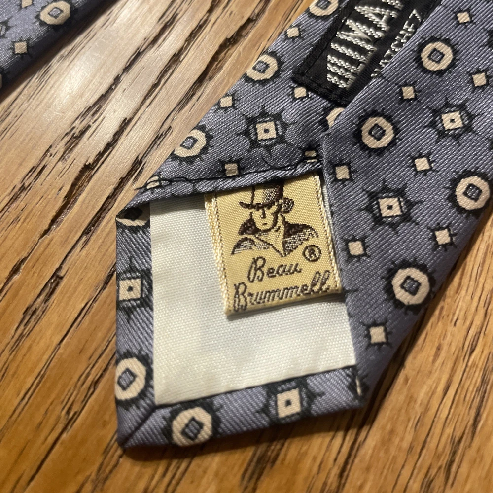 The Vintage 50s Beau Brummell Silk Skinny Tie is a stylish and unique accessory for men. Featuring a colorful Foulard pattern with a retro Swing and Rockabilly theme, this tie is made of luxurious silk satin and is crafted in the United States. The skinny width adds a modern touch to the classic design, making it a statement piece for any vintage-loving gentleman's wardrobe.