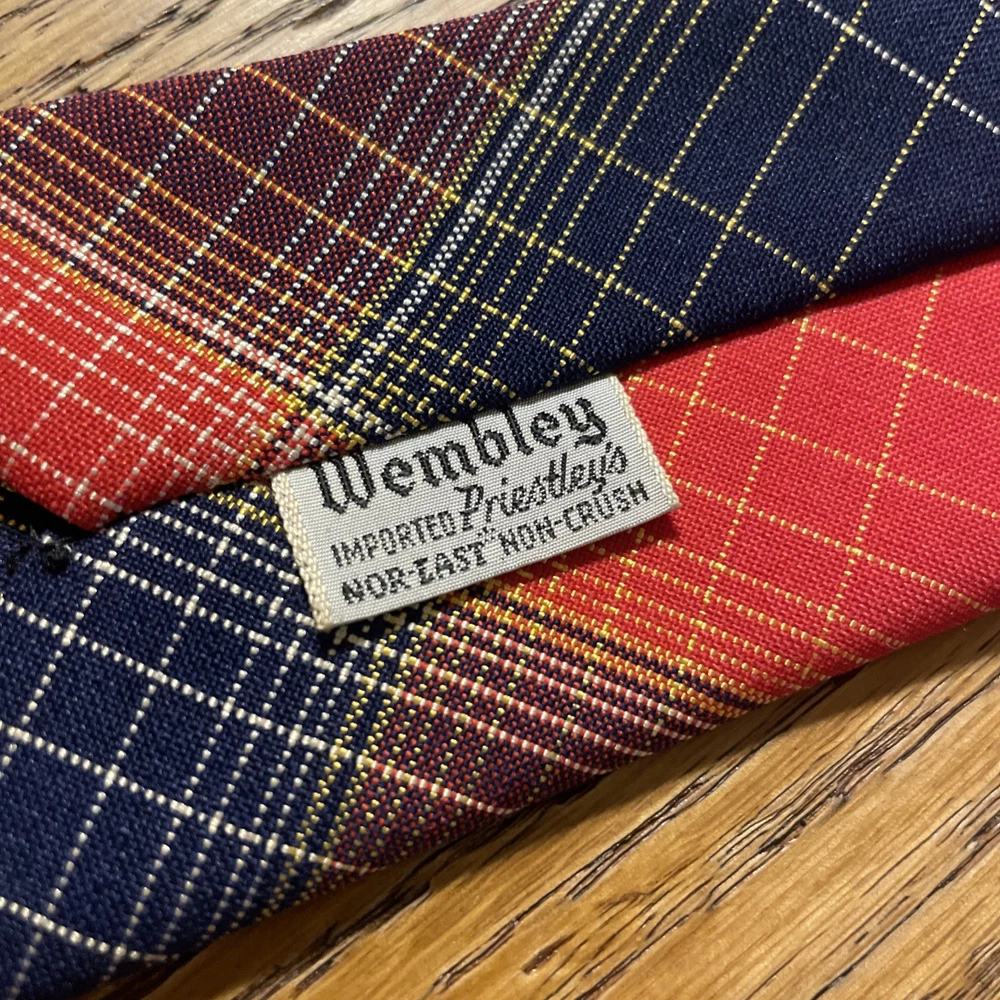 Fabric Type: Priestley’s Nor-East Non-Crush Type: Tie Material: 100% Wool Color: Multicolor Item Width: Skinny Country of Origin: United States Department: Men Style: Slim Tie Theme: Retro, Rockabilly Vintage: Yes Brand: Wembley Pattern: COLORFUL shadow Plaid / Argyle