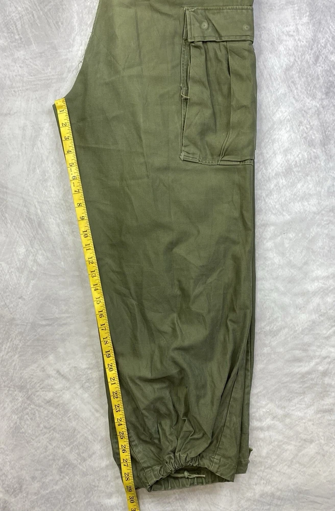 Leg Style: Flared Pattern: Solid Size: M Theme: Army, 50s, Military Size Type: Regular Country/Region of Manufacture: United States Fabric Type: Canvas Material: Cotton Type: Pants Brand: L.W. Foster Sportswear Co., Inc. Inseam: 30 in Accents: Button, Zipper Style: Cargo Pocket Type: Cargo Pocket Vintage: Yes Fit: Regular Occasion: Casual, Travel, Workwear Season: Fall, Spring, Summer, Winter Front Type: Flat Front Closure: Button, Zip Department: Men Features: Pockets Product Line: Unknown Garment Care: Machine Washable Color: Green Waist Size: 36 in
