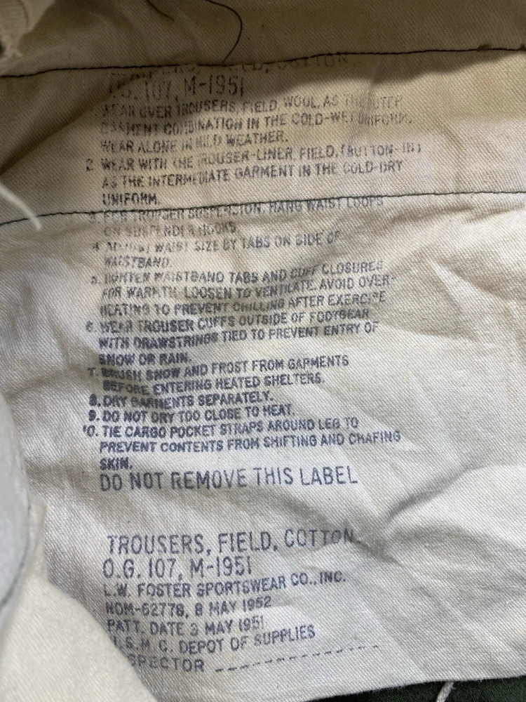 Vintage 50s US Army Military M-1951 Field Trousers Cargo Pants Size Medium 34x29