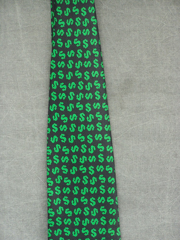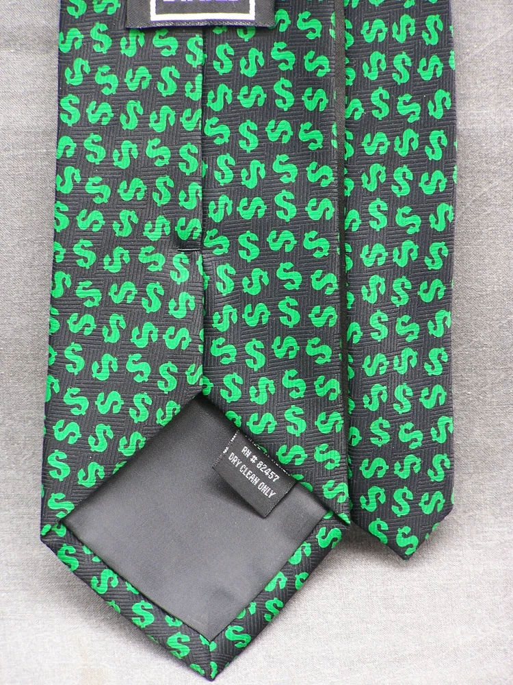 Vintage 57 Black Tie with Green Dollar Signs 4 Wide Retro Style