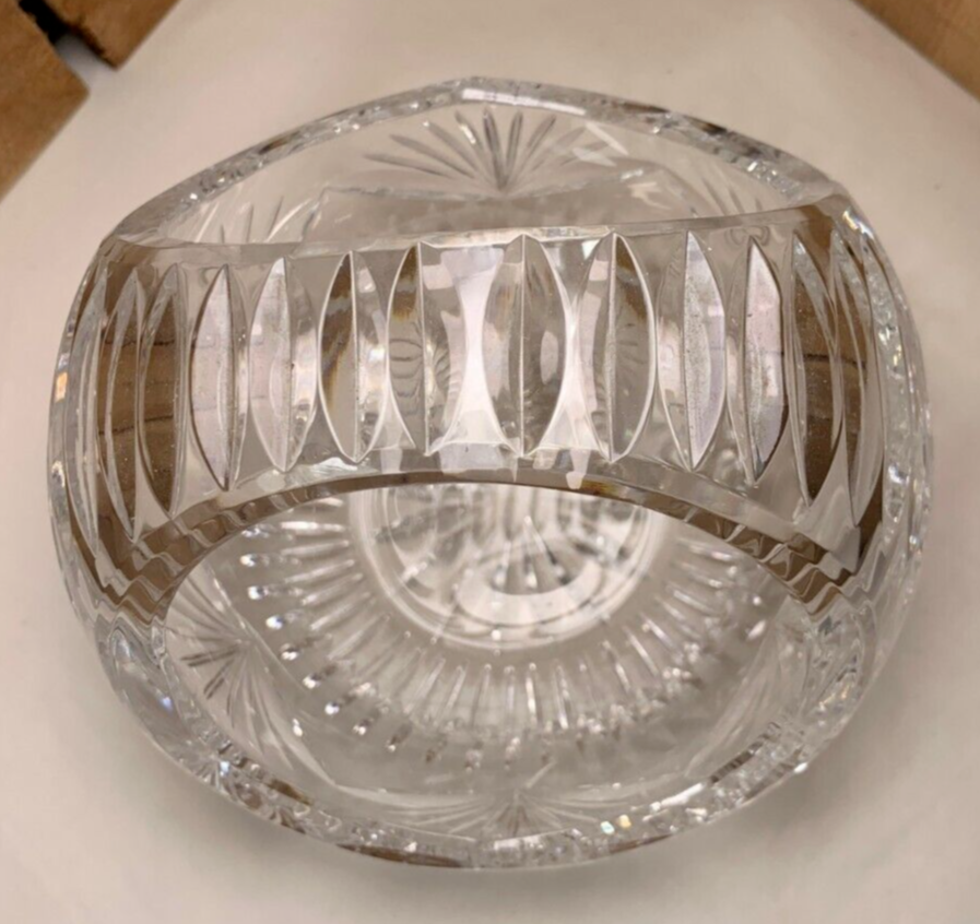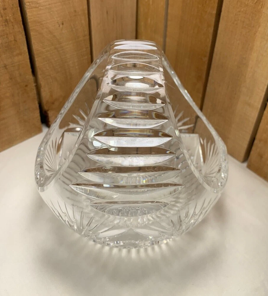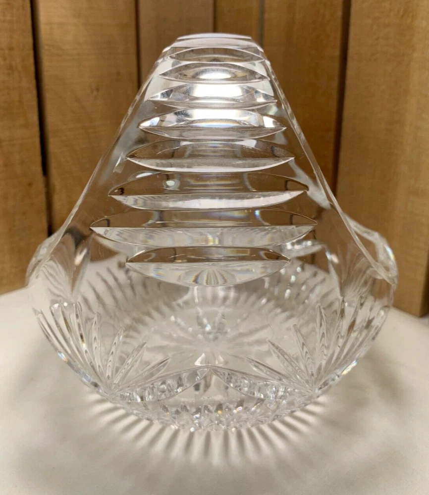 Vintage Round Clear Crystal Nut, Candy, Snack, Flower, or Fruit Basket or Dish. Approximately 5 3/4" tall and 5 3/4" diameter. Weighs 2 lb 5 oz. We try to find out as much information as possible on each item we have available. On occasion we may make a mistake and appreciate your feedback. This item does not appear to have any crack or chips. Please see all photos as they are part of the description. We try to list as many details as possible, however some items are vintage and pre-owned so flaws are to be expected.