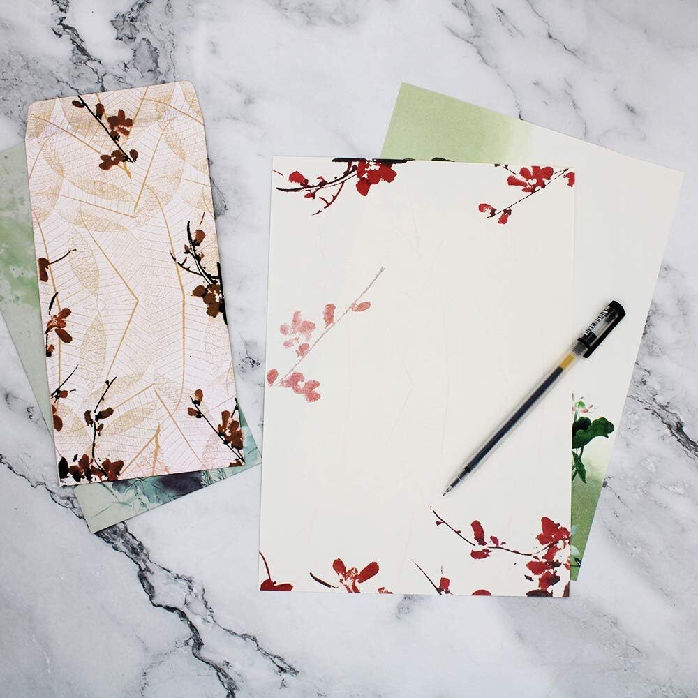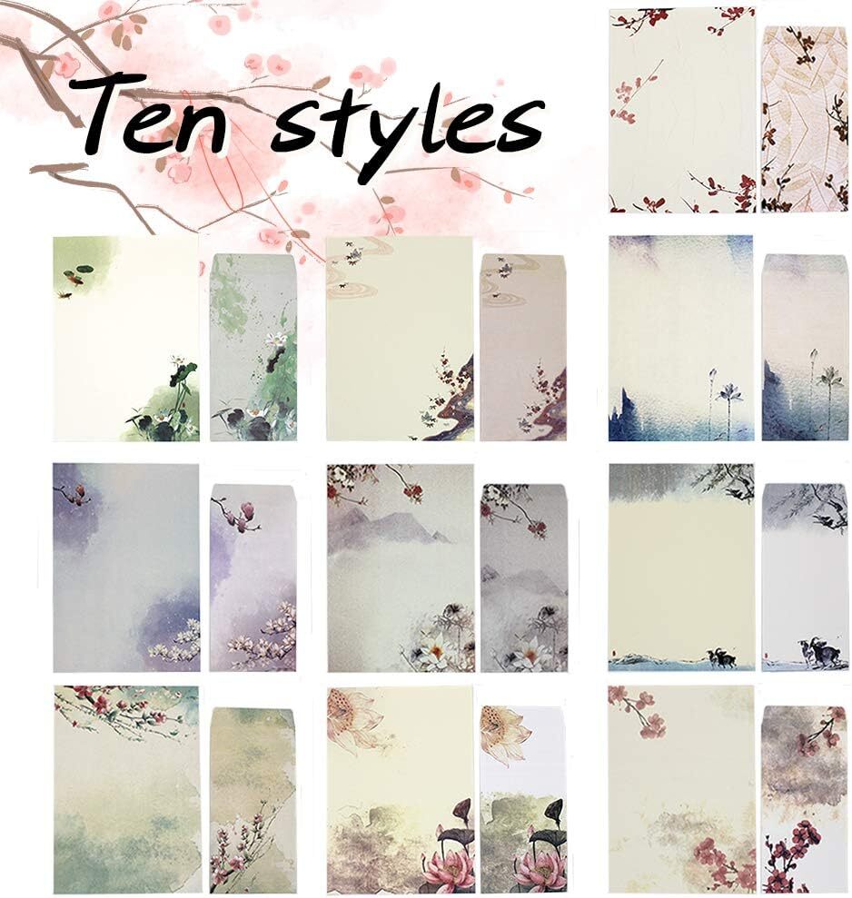 Stationery Paper and Envelopes Set,60PCS Stationary Set(40 60 PC, vintage Product Details Manufacturer: MR.FOAM Brand: MR.FOAM Item Weight: 11.3 ounces Product Dimensions: 10.2 x 7.3 x 0.04 inches Item model number: X-4 Color: vintage Size: 60 PC Sheet Size: 10.2 x 7.3 Inches Manufacturer Part Number: X-4 Color: vintage Sheet Size: 10.2 x 7.3 Inches Brand: MR.FOAM Sheet Count: 60 Product Dimensions: 10.2"L x 7.3"W Package included: The stationary paper and envelopes set included 40 Chinese stationery stationery letters, 20 ink design envelopes, 20 fixed stickers Multi function lovely stationery set: you can not only write letters, but also send business invitations, party invitations, blessing messages and thank-you letters Stationery package size: Stationery paper: 10.2 x 7.3 in. / 26 x 18.5 cm; envelope: 8.46 x 4.33 in. / 21.5 x 11 cm; sticker: 0.6 x 1.6 in. / 1.5 x 4 cm Fixed letterhead style: there are 10 kinds in total, which are designed in ink. Each style includes 4 pieces of paper and 2 envelopes, including lotus, plum, peach, lotus and other styles Classic taste: exquisite stationery paper is super suitable for daily writing and gift giving. High quality stationery can write smoothly Why choose us:1. Widely usedGreat penpal kits for writing letters, sending business invitations, party invitations, blessing messages and thank-you letters; also for daily calligraphy and graffiti.2. Color pattern:The stationary paper and envelopes set has 10 kinds of patterns of stationery and envelope cover, as shown in the figure. Exquisite patterns and warm colors make stationery and envelope cover so charming.3. High quality invitation:High quality letter writing is smooth; characteristic:Size: fancy paper: 10.2 x 7.3 inches / 26 x 18.5 cm;Envelope: 8.46 x 4.33 in / 21.5 x 11 cmThe Letter Writing Paper Letter Set package includes:40 * Chinese cute stationery suit20 * ink design envelopeThe stationary set has 10 styles of ink painting:Dark fragranceA gentle taleLotusGreen lotusThe figure of plum blossomLotus in inka magnoliaOn the clear rainLotus in the quiet yardYoung peaceTips:1. Due to the different color settings of each monitor, the color may be slightly different.2. Please consult your post office. We are not sure whether these envelopes can be used for cute stationary size is smaller than A4 paper.