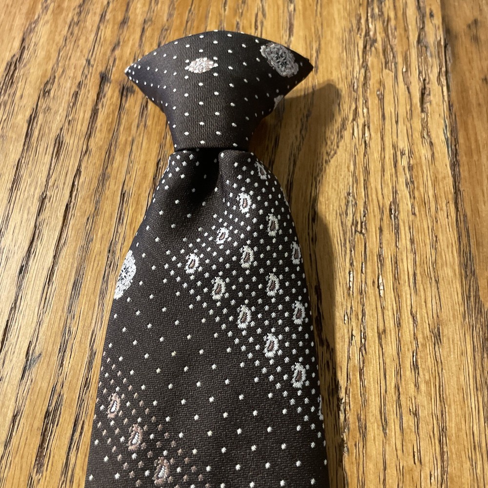 This vintage 60s 70s polyester clip-on tie is a perfect accessory for men looking to add a touch of retro flair to their ensemble. The geometric pattern and multicolor design give off a Mod, Disco vibe, making it a standout piece for those who appreciate retro fashion. Made in the United States, this woven tie is classic in width and showcases the unique style of the era. The clip-on attachment type allows for easy wear, making it a convenient addition to any man's wardrobe.