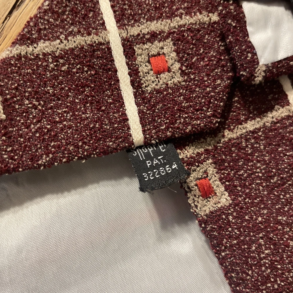 This vintage 60s 70s Sears polyester clip on wide tie is a retro piece perfect for those looking to add a touch of Mod and Disco flair to their outfit. The multicolor geometric pattern on this woven polyester tie adds a unique and eye-catching element to any ensemble. With its clip-on style and wide width, this tie is a versatile accessory that can elevate a variety of looks with its retro charm. Made in the United States by Sears, this tie is a nostalgic piece that embodies the vibrant style of the 60s and 70s era.