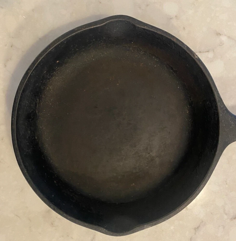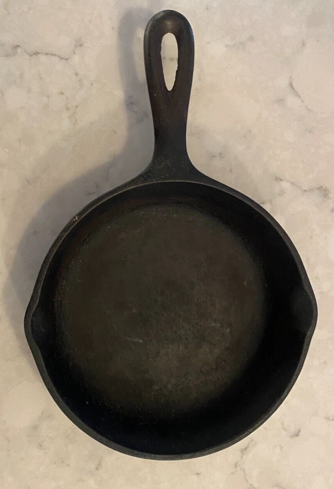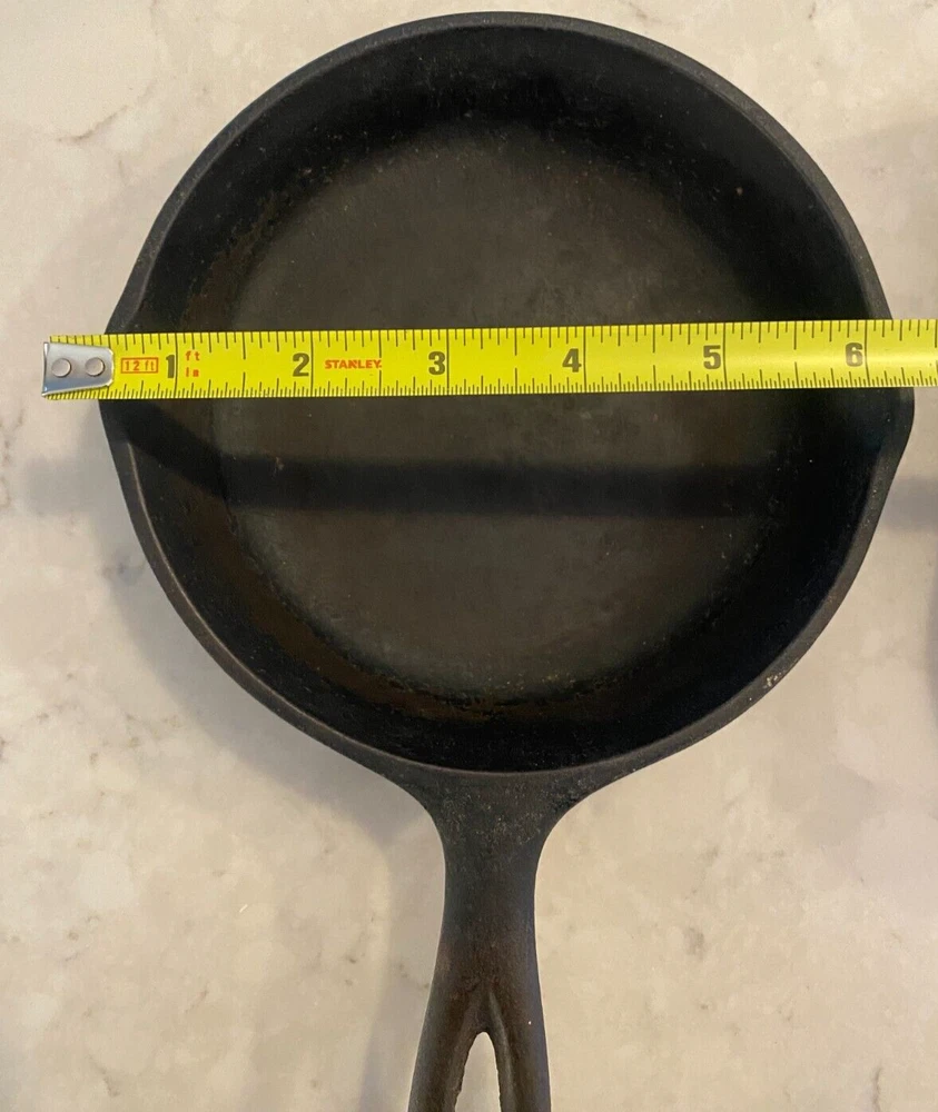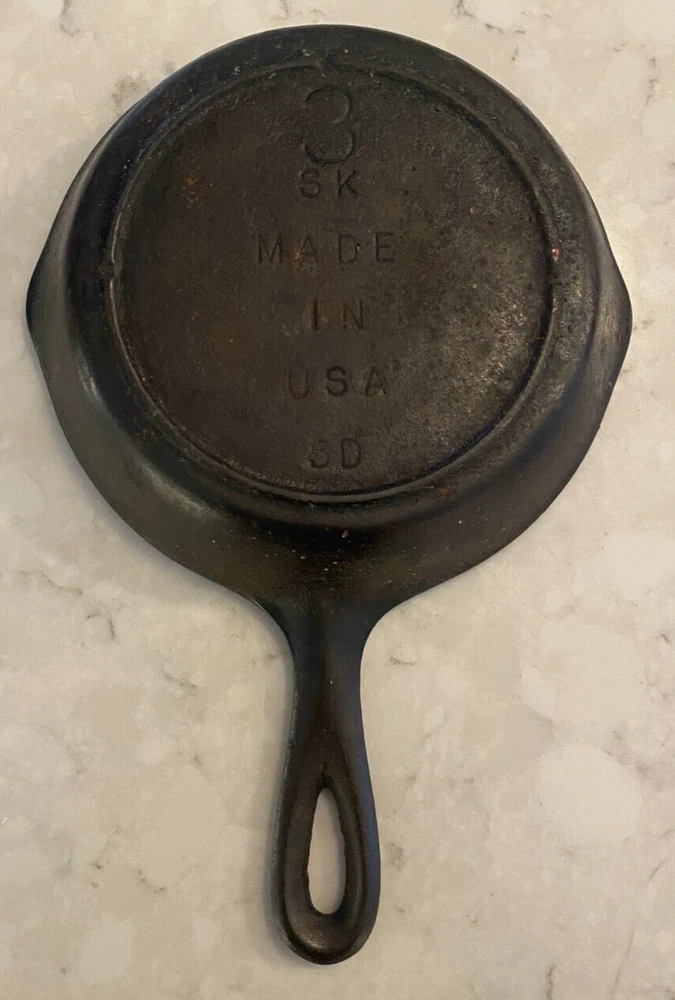 This vintage cast iron skillet/griddle is a must-have for any collector of cookware. Made in the USA by SK, this 6-3/8" H1 #3 SK 3 Notch model is perfect for those who enjoy cooking on both electric and gas stoves. The black color and antique design make it a great addition to any kitchen or as a display piece. The skillet/griddle is easy to clean and oven-safe, making it a convenient and practical piece for everyday use or special occasions. Its features include a unique notch design, originality, and a vintage charm that cannot be replicated. This item is perfect for those who appreciate the history of cookware and want to add a piece that is both functional and stylish to their collection.
